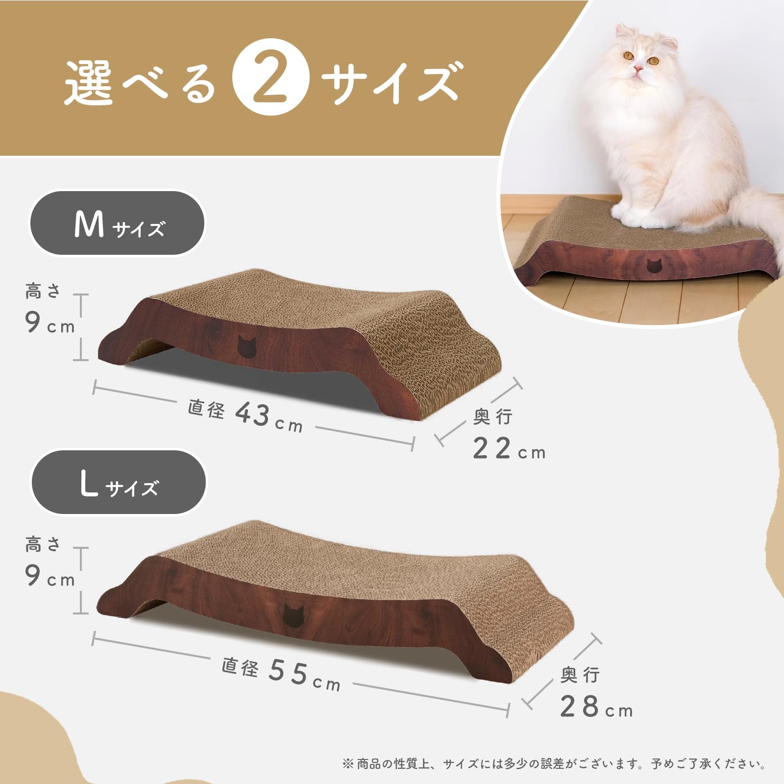 【高密度ダンボールで長持ち】ダンボールは薄いダンボールを貼り合わせています。薄いタイプを使用することで密度が高くなり、猫のとぎ甲斐アップだけでなく、耐久性も持たせています。