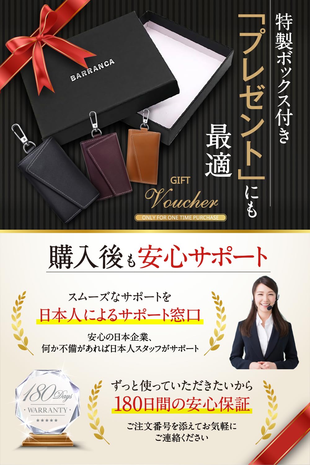 [BARRANCA] キーケース メンズ レディース スマートキーケース 本革 6連フック カラビナ カード入れ 専用ボックス付き