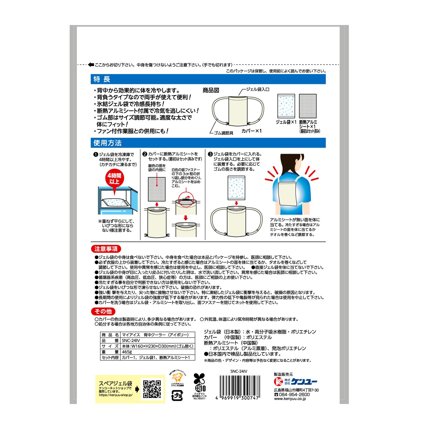 ケンユー マイアイス 背中クーラー(アイボリー) 冷却 冷感 作業服 作業 屋外