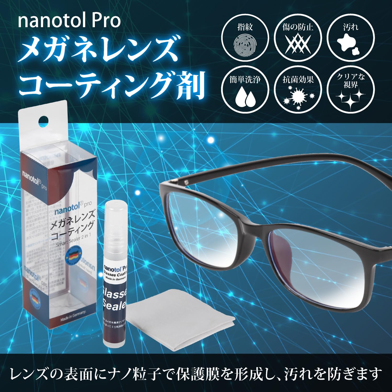 【新着商品】メガネコーティング剤 傷防止 メガネクリーナー 汚れ防止 簡単洗浄 サングラス対応 nanotol Pro