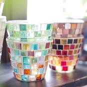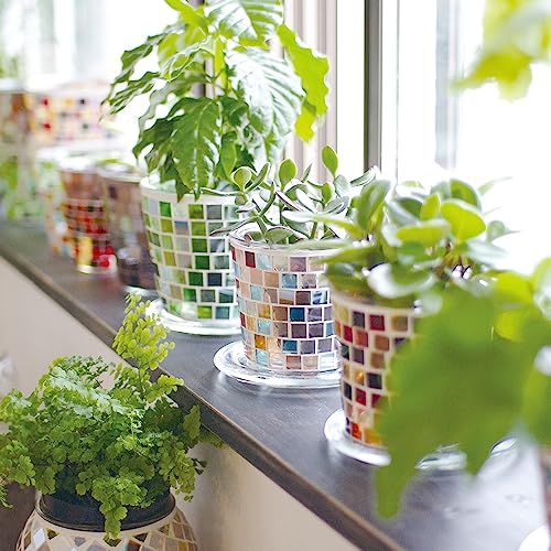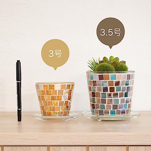 カラフルなガラスタイルの透明感や太陽光を反射する輝きが美しい、ガラス製のプラントポット。インテリアとしてもおしゃれなガラスの彩りがお部屋と植物を引き立てます。