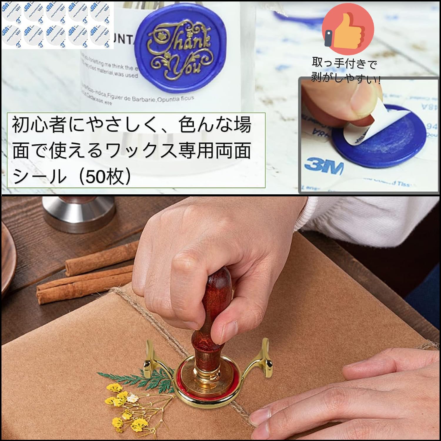 Kandar シーリングスタンプ シーリングワックス 専用フレーム セット 両面シール付き 50個入り 25mmスタンプ専用