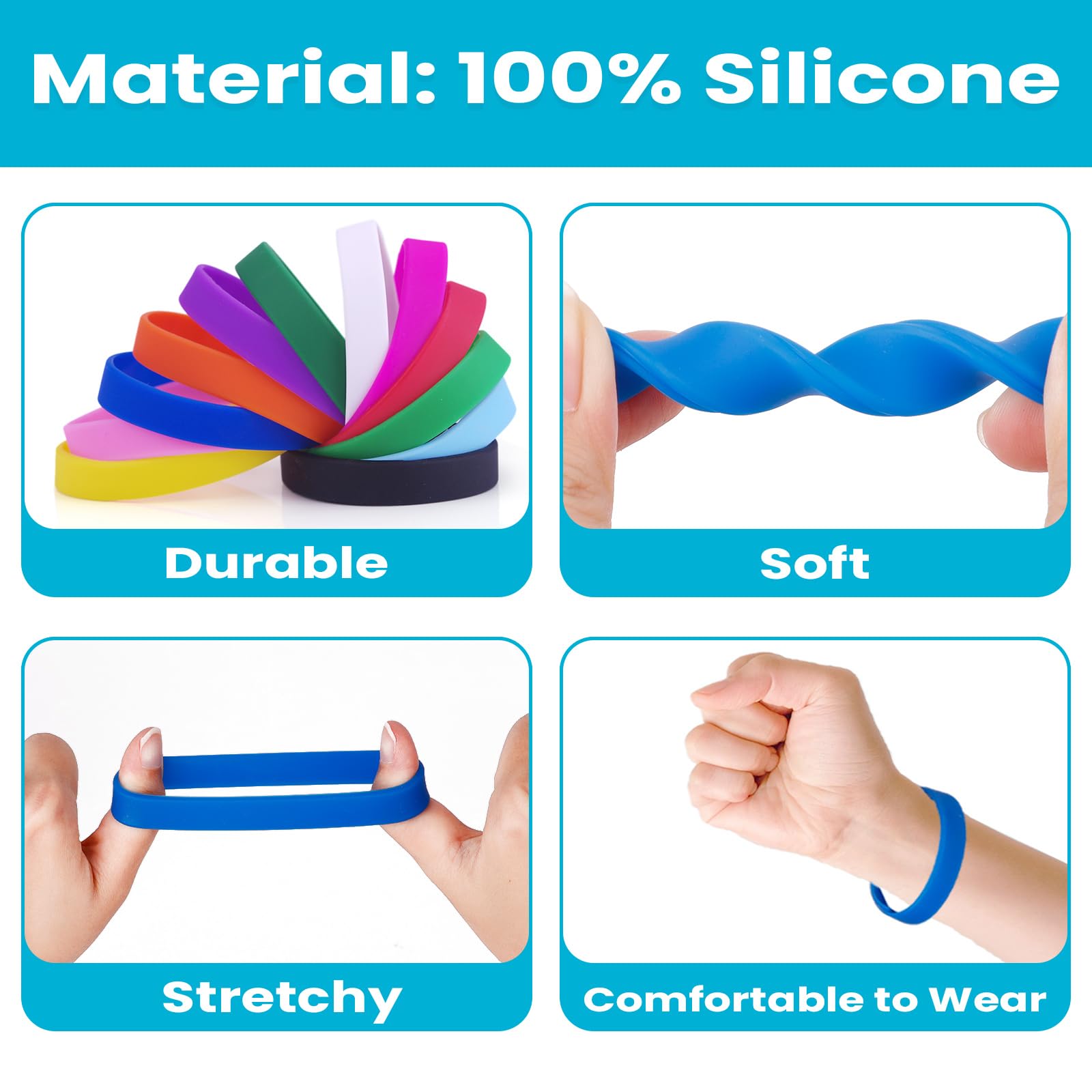 梱包数量-1つのパックには、1ダース(12個)のシリコンリストバンドが含まれています。 服装や場面に応じて色を選べます。 さまざまなニーズに対応します。