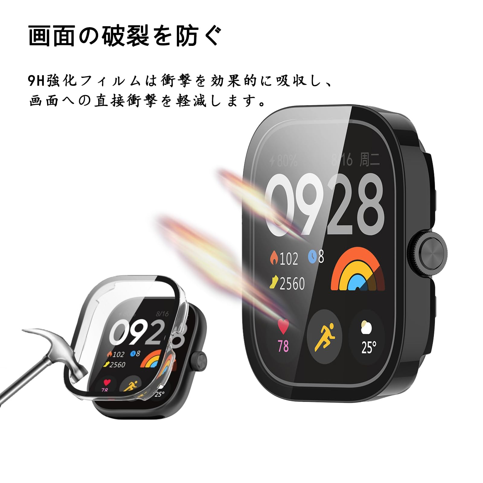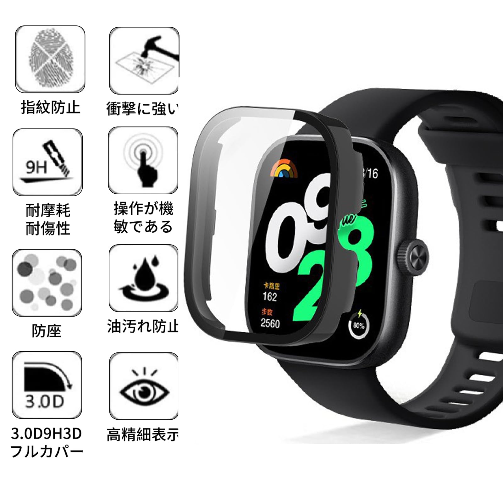 高品質素材:[シャオミ]Xiaomi Redmi Watch 5/4 カバーの画面部分が硬度9Hで強靭な日本旭硝子素材を採用して耐傷、耐衝撃のは強い。スマートウォッチ本来の美しさをそのままに保つことが可能です。