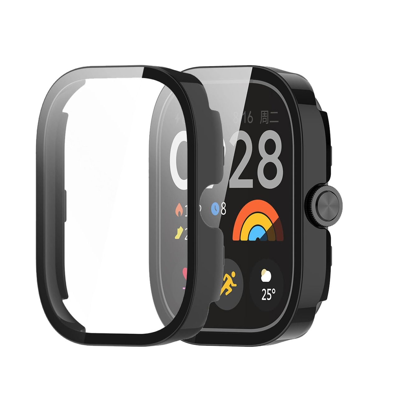 【2022最新】YAODLE For シャオミ Redmi Watch 5 カバー xiaomi(シャオミ)Redmi Watch 5/4 ケース PC素材 カバー ガラスフィルム一体型 全面保護 二重構造 防塵 日本旭硝子材 キズ防止 軽量(ブラック)
