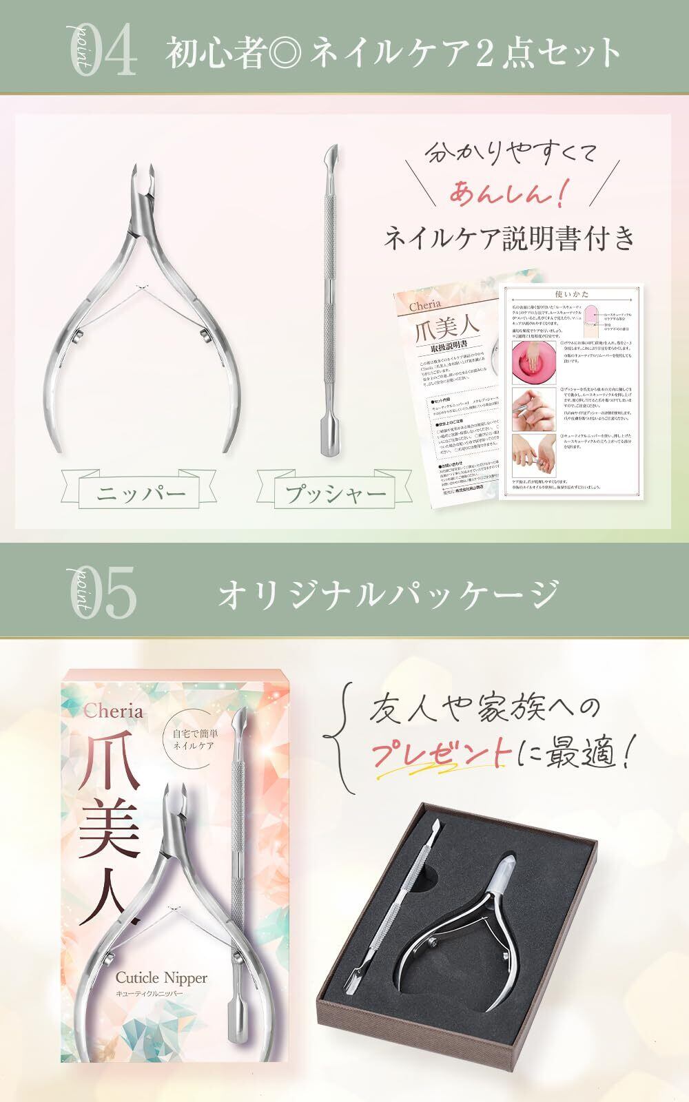 【トップネイリスト監修】 Cheria キューティクルニッパー 甘皮処理 ネイルケア プッシャー 爪美人