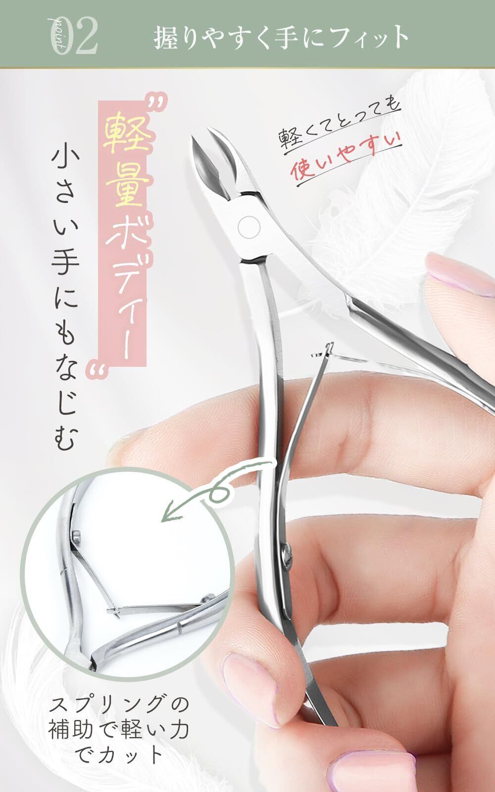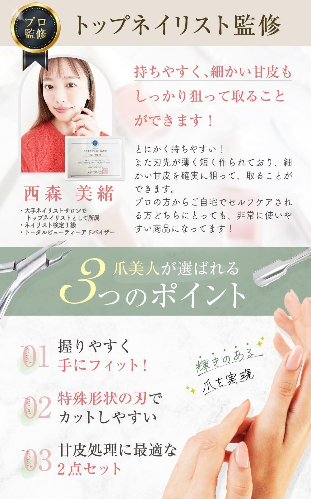 トップネイリスト監修!初心者でもできるネイルケア2点セット。甘皮処理に最適 。軽量で握りやすいサイズ 。シャープな切れ味