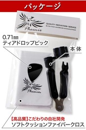 Phoenix ストリングワインダー アコースティックギター 弦 メンテナンス ( ペグ回し ブリッジピン抜き ニッパー ) ファイバークロス/ピック/メーカー長期書<4点セット>Black(ブラック)