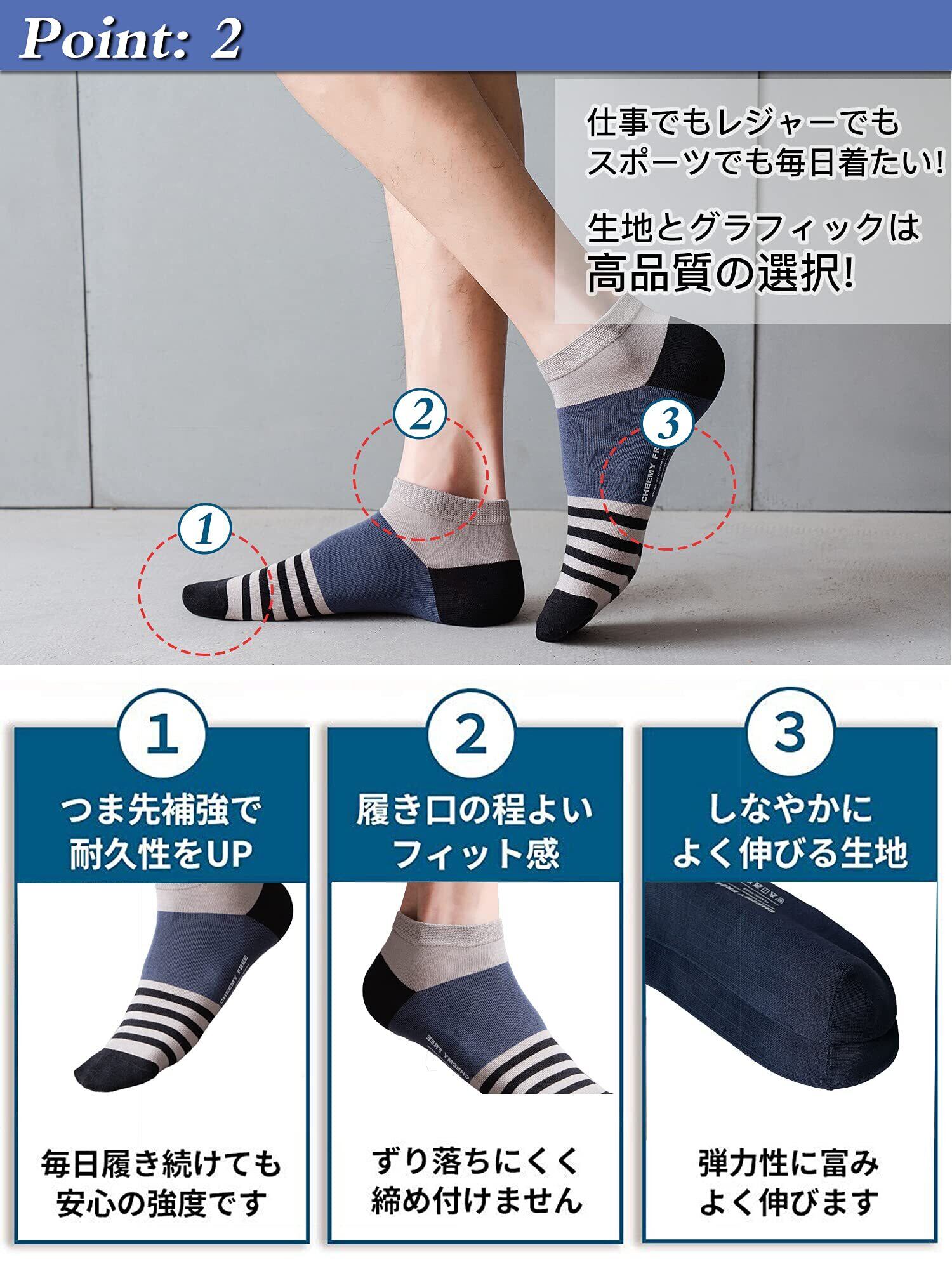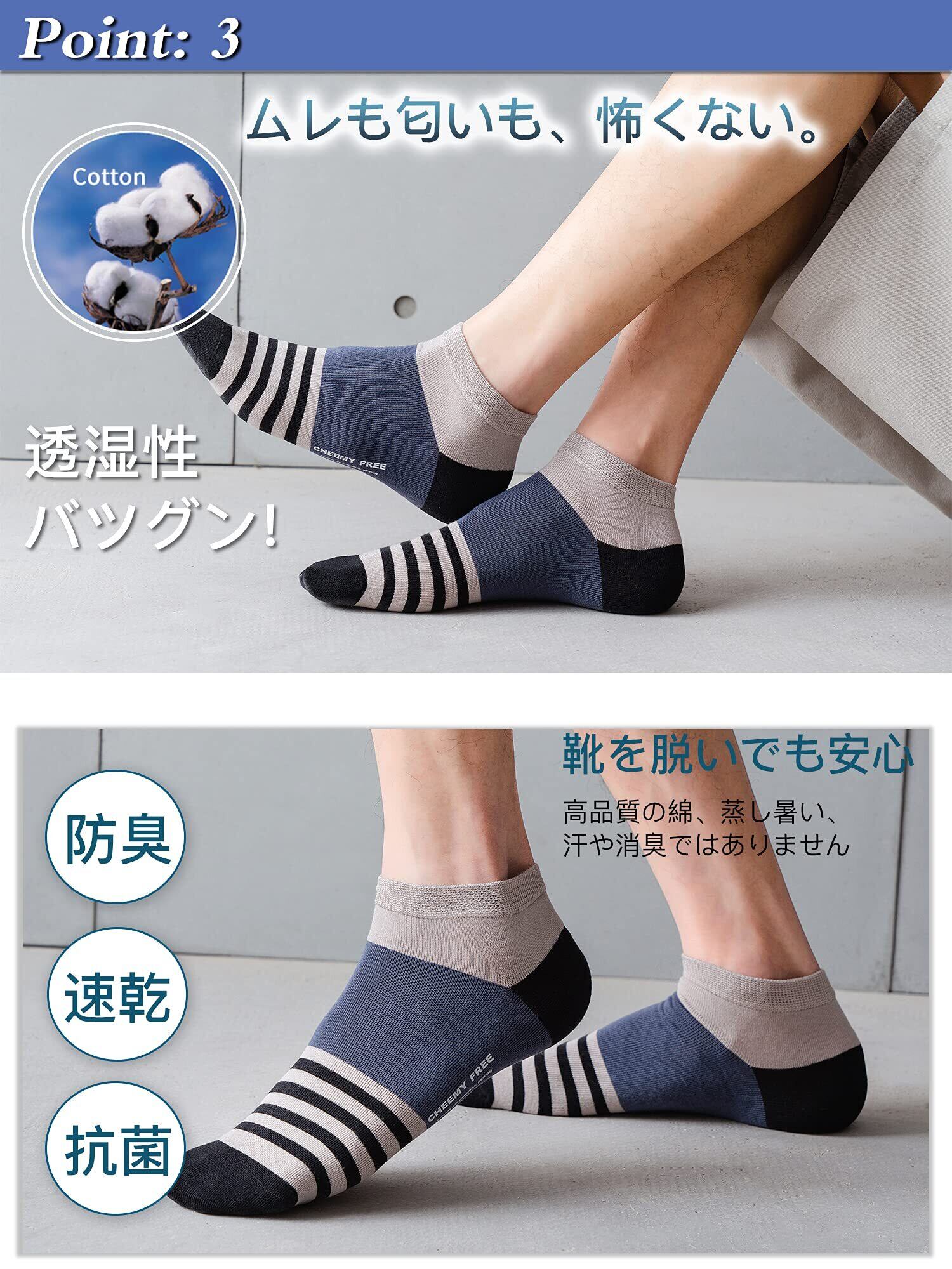 [XCHMYi] 靴下 メンズ くるぶし ソックス 抗菌防臭 吸汗速乾 5足セット スポーツソックス 綿 カジュアル ショートソックス スニーカーソックス 通気性 薄手 脱げない 夏用 フリーサイズ24~27cm 男女兼用