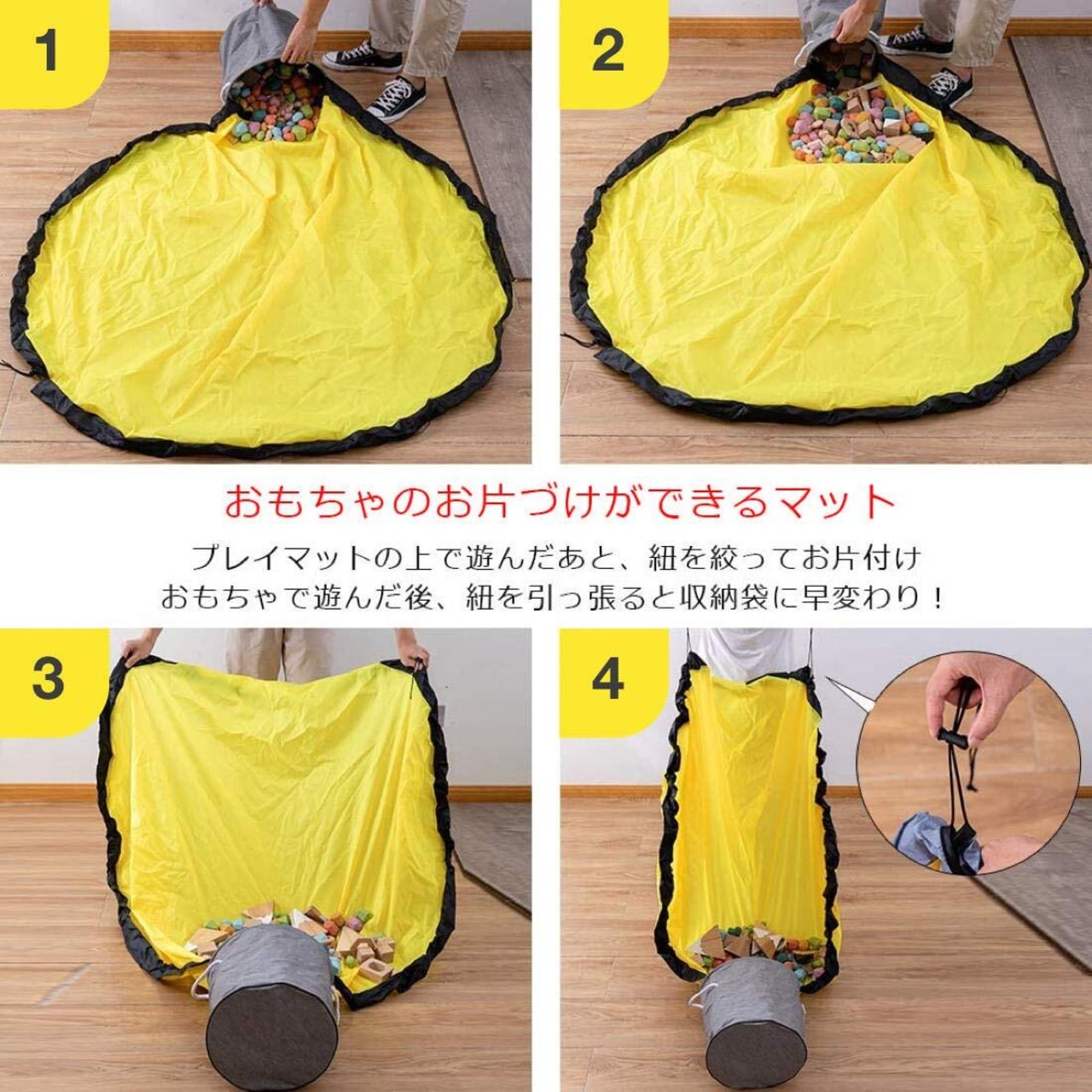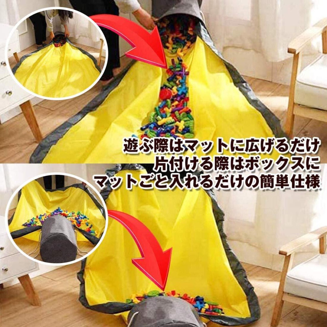 【2-WAYの使い方】おもちゃ収納袋としても使えます/プレイマット仕様に。家でもアウトドアでも用いられるグッズです。様々なシーンでとっても便利!