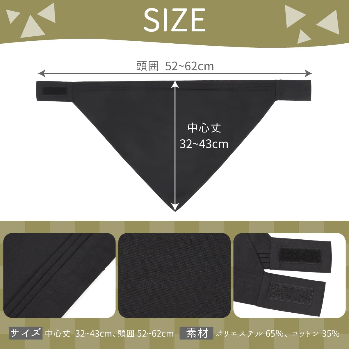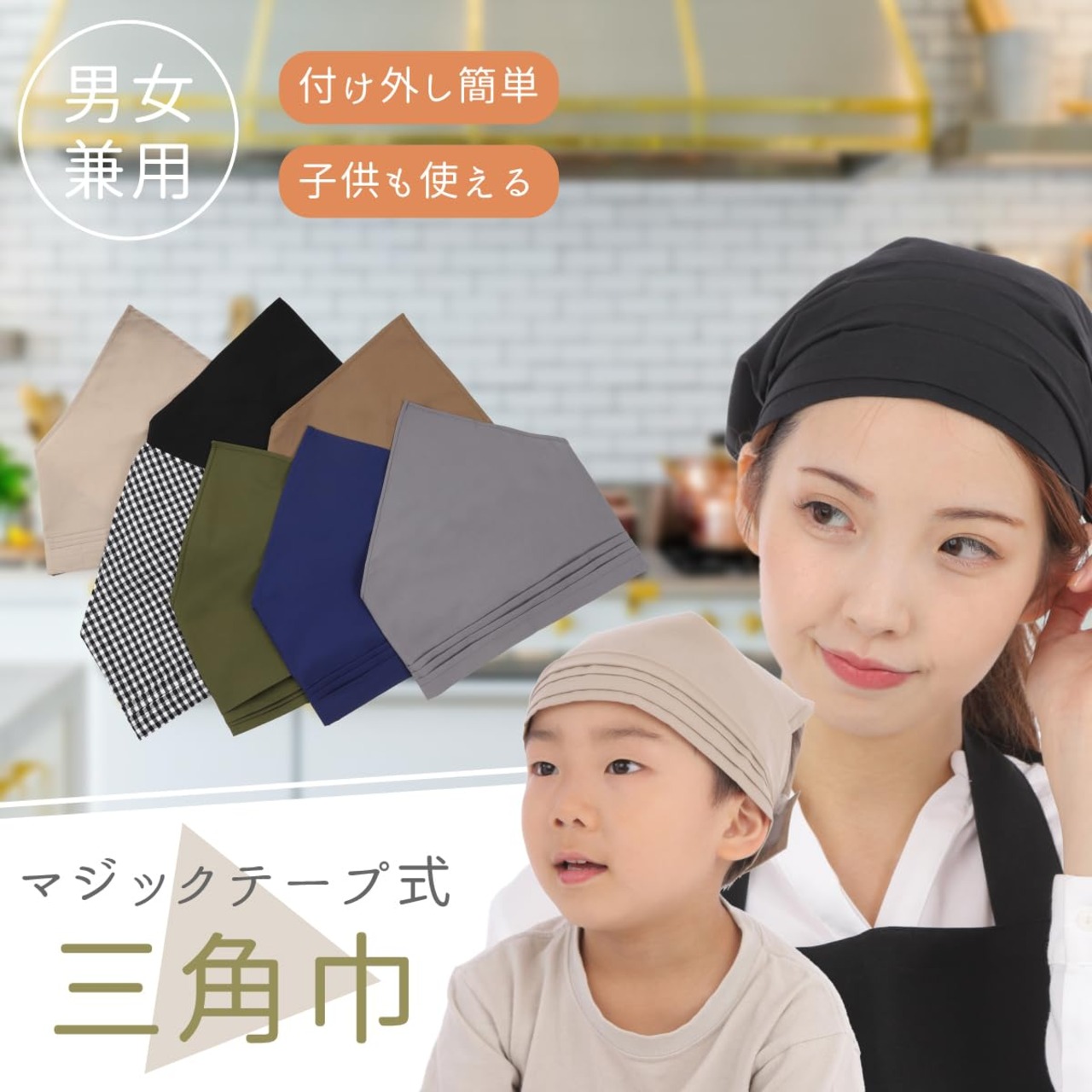 【数量限定】[E-Reise] 三角巾 マジックテープ付き 大人用 子供用 男女兼用 シンプル 簡単に取り付ける カフェ 調理実習 料理教室 清掃 美容院 業務用 家庭用