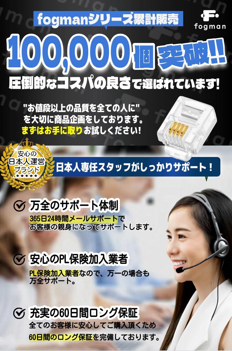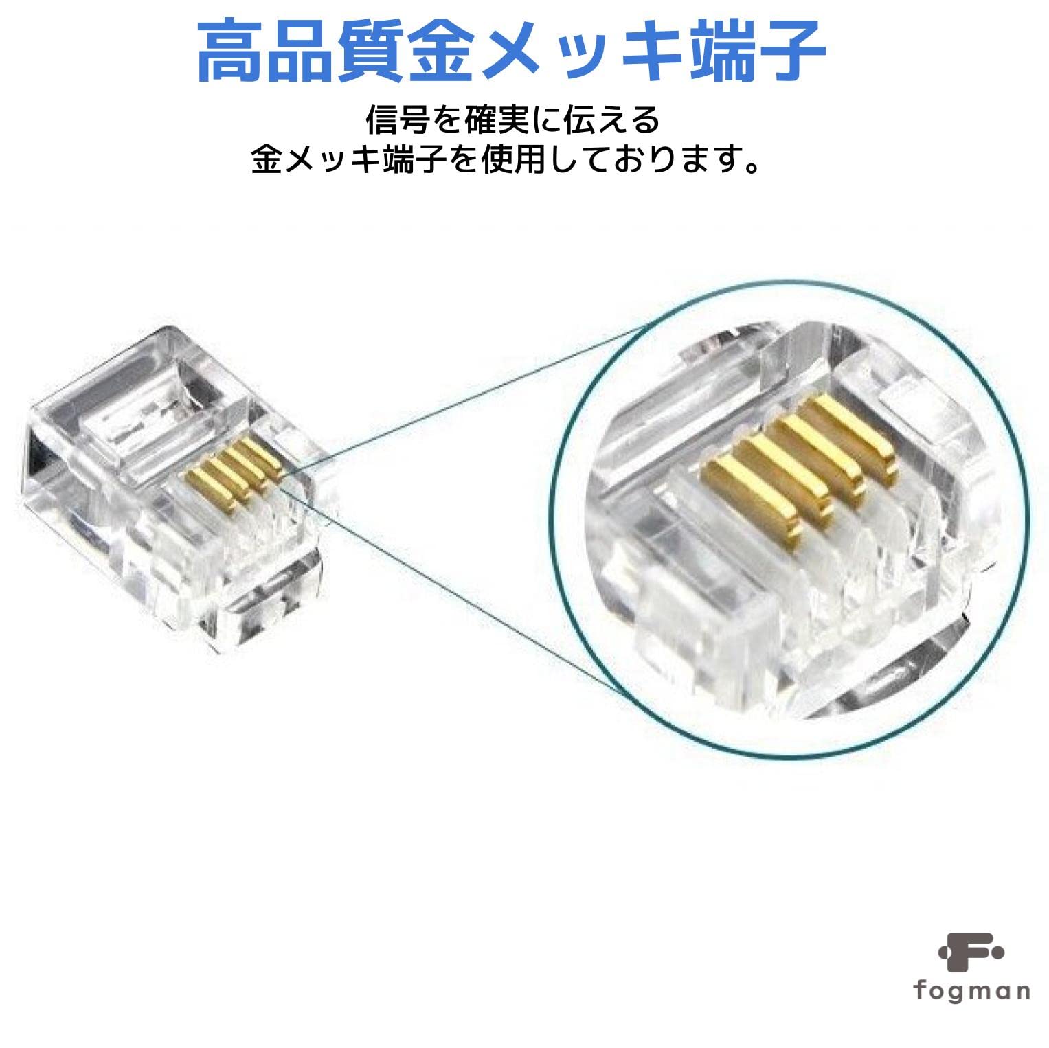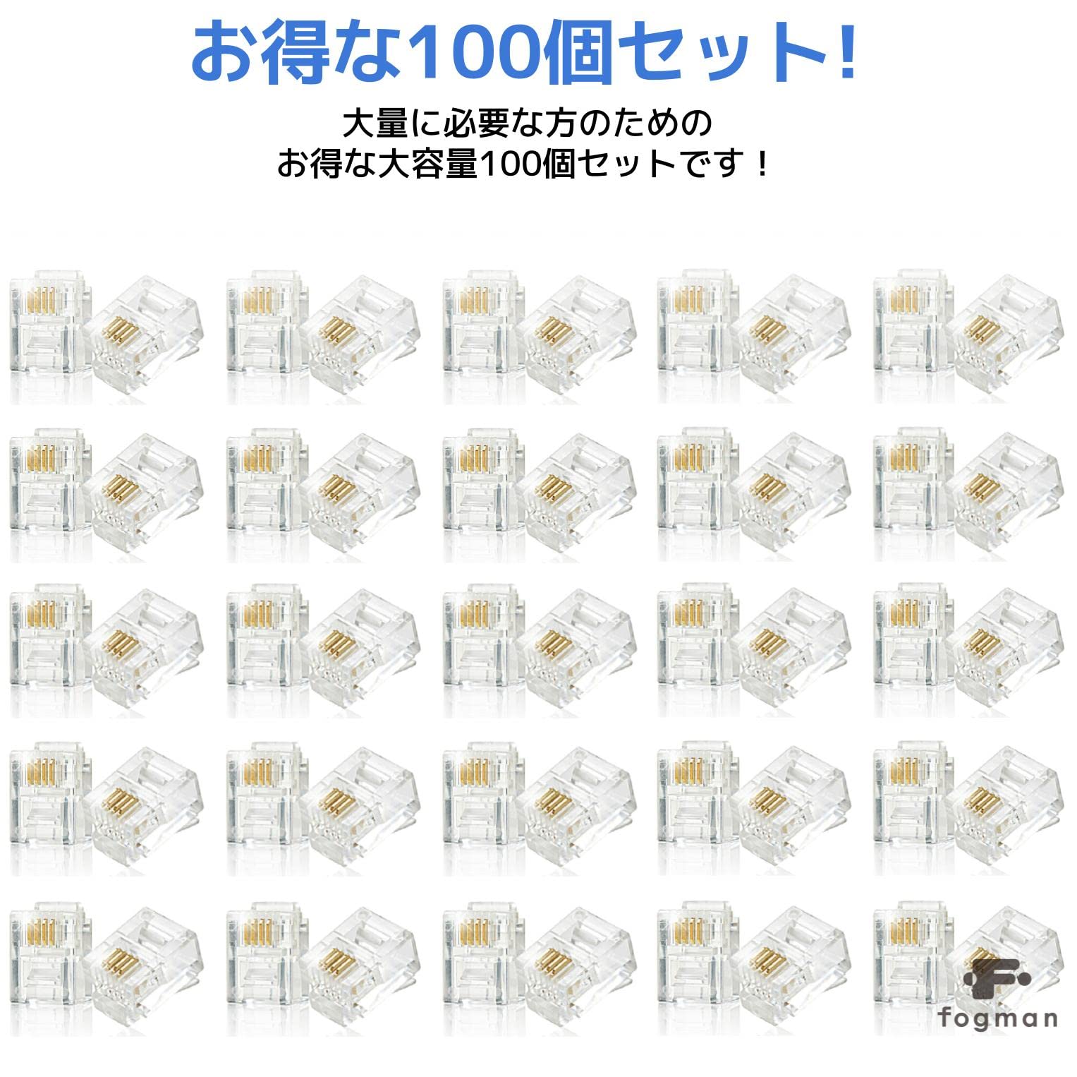 【新春セール】fogman RJ11 モジュラーコネクタ 100個セット 金メッキ 6極4芯 6P4C