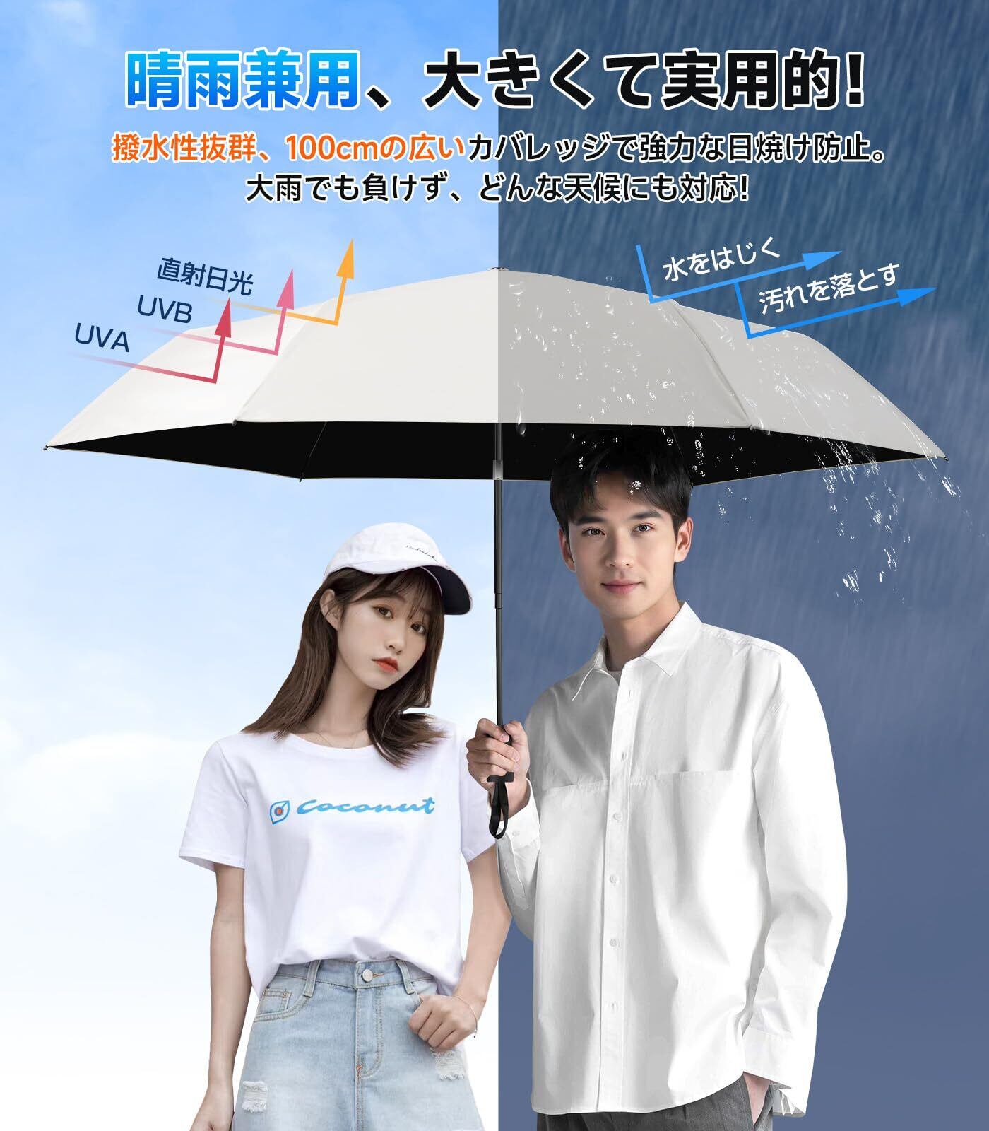 【JIS認証!究極の日傘—完全遮光遮熱・UVカット率100%】『日焼けたくない!』日差し対策。当社日傘は特殊高密度ポリエステル生地と遮熱コーティング技術により日差しの熱ストレスを軽減する設計で、第三者機関測定でUVカット率100%を確認、JIS規格に準拠した遮光性能を実現。開いた瞬間から、-15℃の冷却効果だけでなく、紫外線から肌を保護するだけではなく、厳しい暑さから身体を守る高い遮熱性を実現しています。通勤・買い物・お子様の送迎など、日中の外出時に重宝します。
