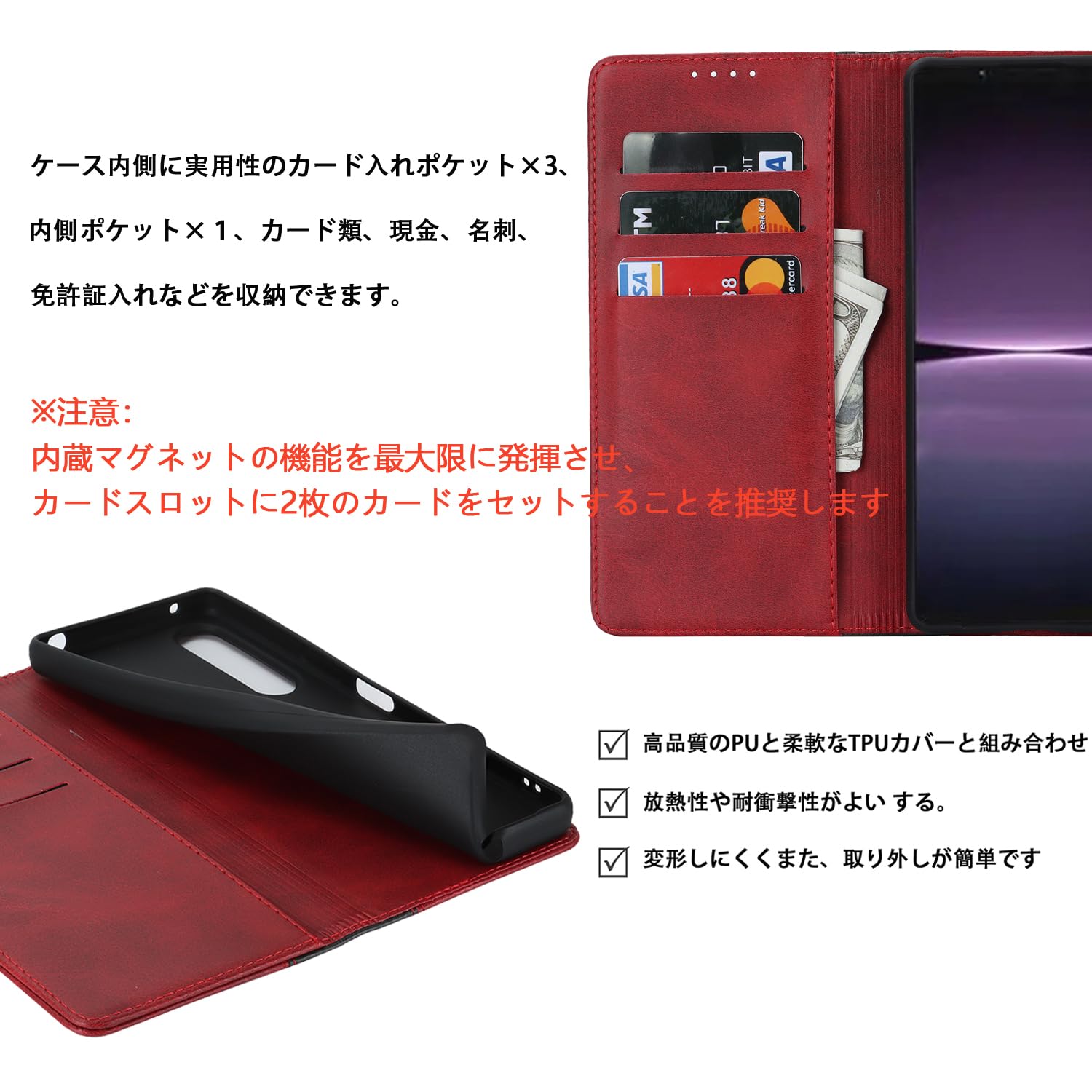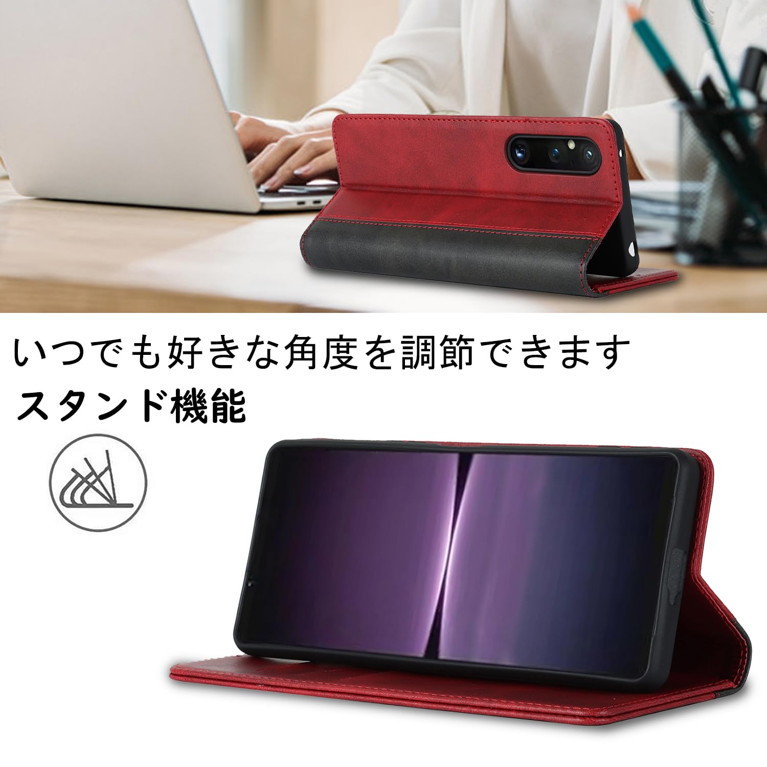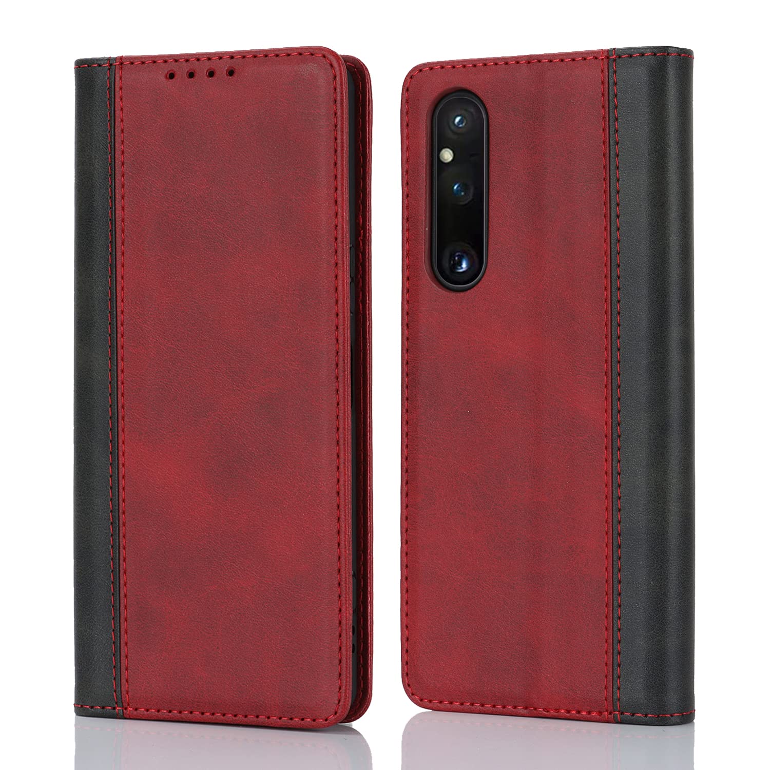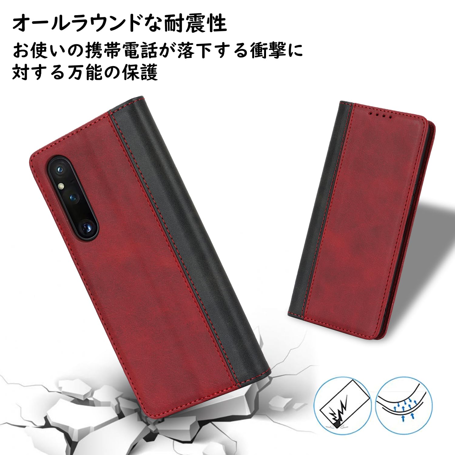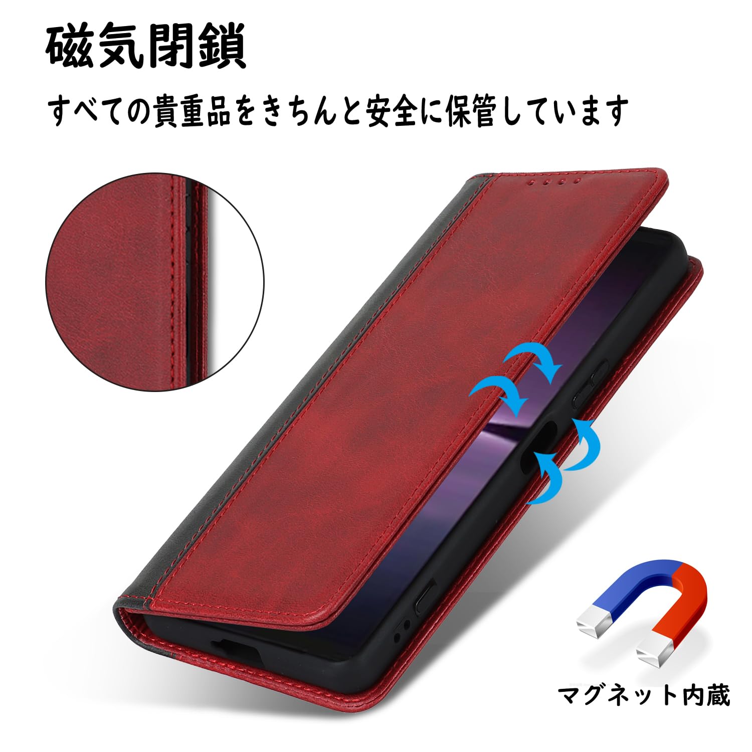 Havaya Xperia 1V ケース エクスペリア1 v ケース 手帳型 docomo SO-51D スマホケース SOG10 au SONY ソニー Xperia 1V 第五世代 耐衝撃 カバー マグネット式 SoftBank カード収納 スタンド機能 レザー-レッド+ブラック