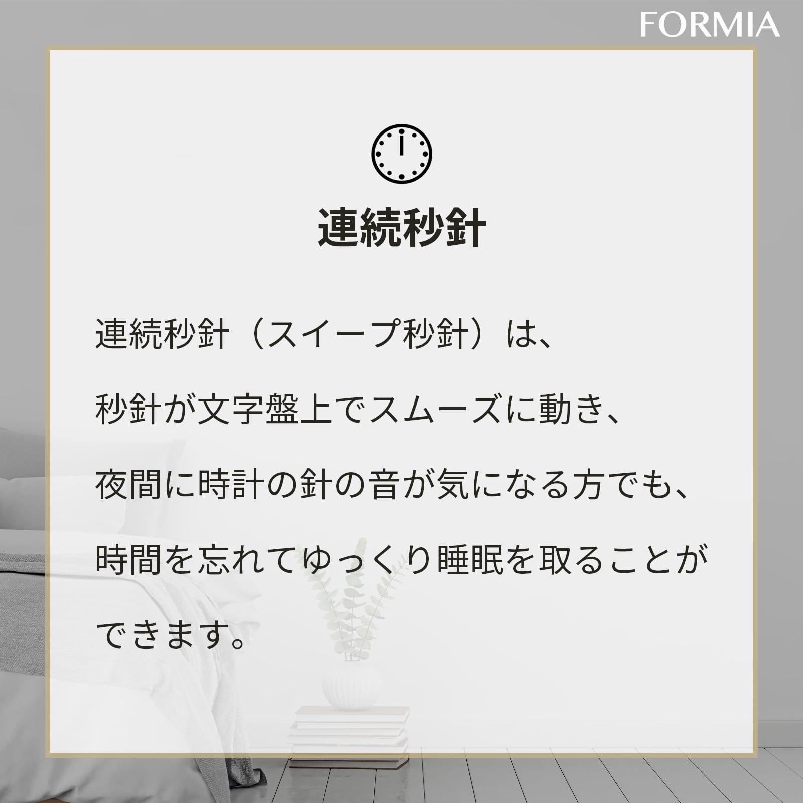 ・心地よく流れる秒針、リラックスタイムを邪魔しない。