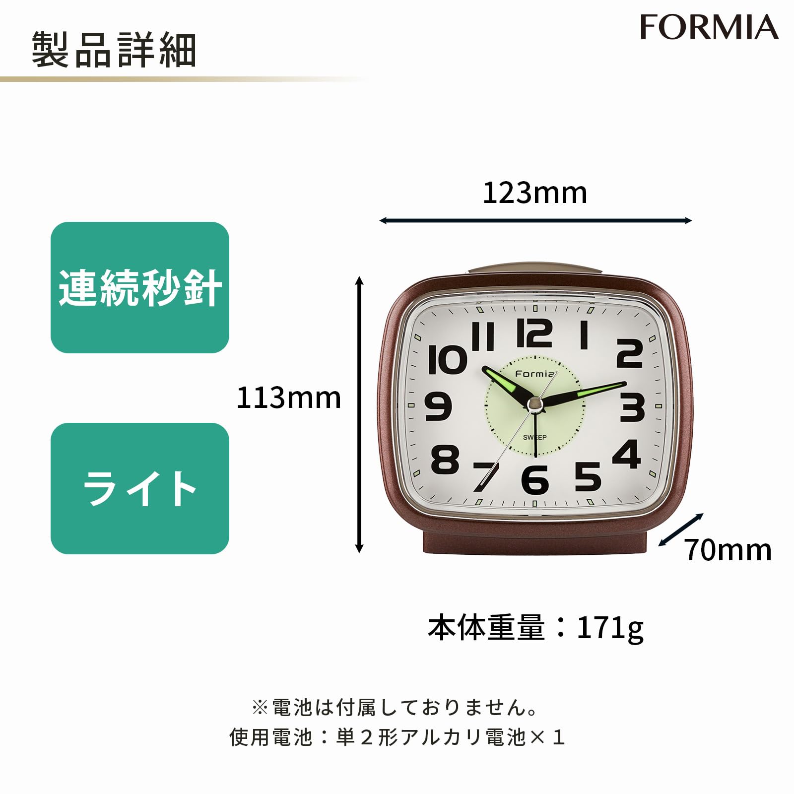 Formia(フォルミア) 目覚まし時計 蓄光 静音 連続秒針 電子音 スヌーズ アナログ 置き 卓上 保土ヶ谷電子販売 ホワイト HT-A015W-BR