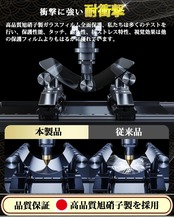 【最強硬度9H!飛散防止】9Hの表面硬度を誇る保護フィルムが摩擦や傷から液晶ガラスをしっかり保護します、引っかき傷に強く、うっかり鍵や硬貨などとこすれてしまっても傷がつかず、きれいな画面を保ちます。万が一の破損時も飛散防止加工によって破片はフィルムに張り付いた状態で破片がほとんど飛び散らない安全性の高いガラスになっています。