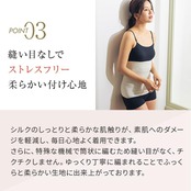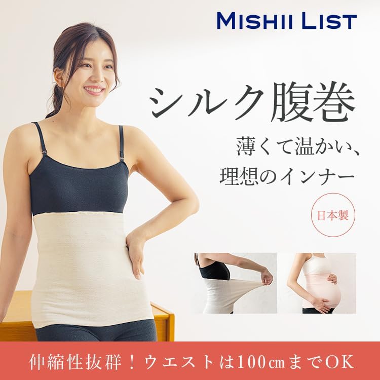【天然の美容成分シルク】シルクがもつタンパク質「セリシン」は人の肌構成とそっくり。共通した18種類のアミノ酸で構成されているので、肌なじみの良さにうっとりします。シルクの繊維には小さな穴が無数にあります。空気を多く含む事ができるので、体温を逃がしづらく一定の温度を保ってくれます。また、コットンの役1.5倍の吸湿性があるため、汗を素早く吸収し、湿気を逃がす力もあるので、オールシーズン快適な着心地を実現してくれます。ミッシーリストの「シルク腹巻」は、筒状に編まれているので縫い目がありません。嫌なチクチク感がなく、ストレスフリーに着用できます。低刺激なので敏感肌の方にもおすすめ。