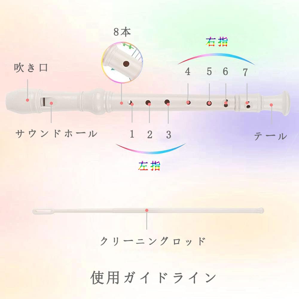 ソプラノリコーダーバロック様式Cキー8穴フルート着脱式3本セットABS音楽リコーダー(掃除棒、バッグ、運指表付)学校初級者向け