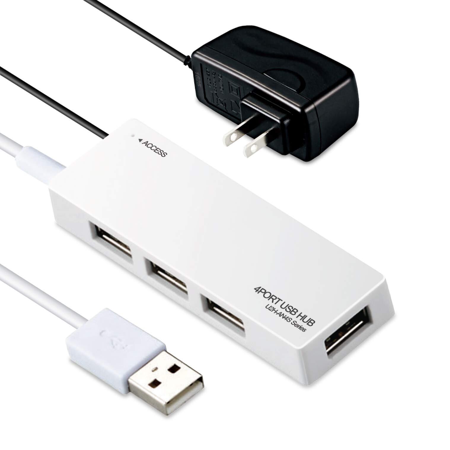 ■ACアダプターが付属するセルフパワー・バスパワー共用タイプの4ポートUSBハブです。