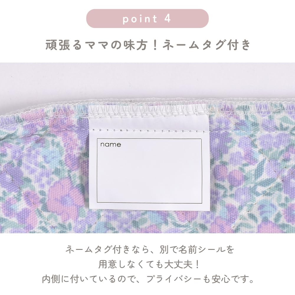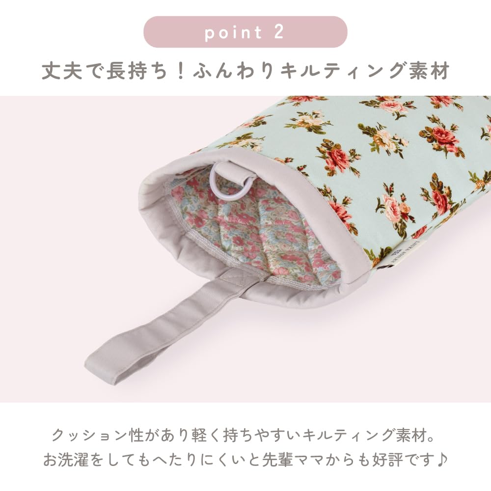 LAURA ASHLEYの生地を使用したシューズケース。表地のオックス生地から裏地キルティングにもLAURA ASHLEYの生地を使用。中綿入りのしっかりとしたキルティング素材なので、シワになりにくく丈夫です。