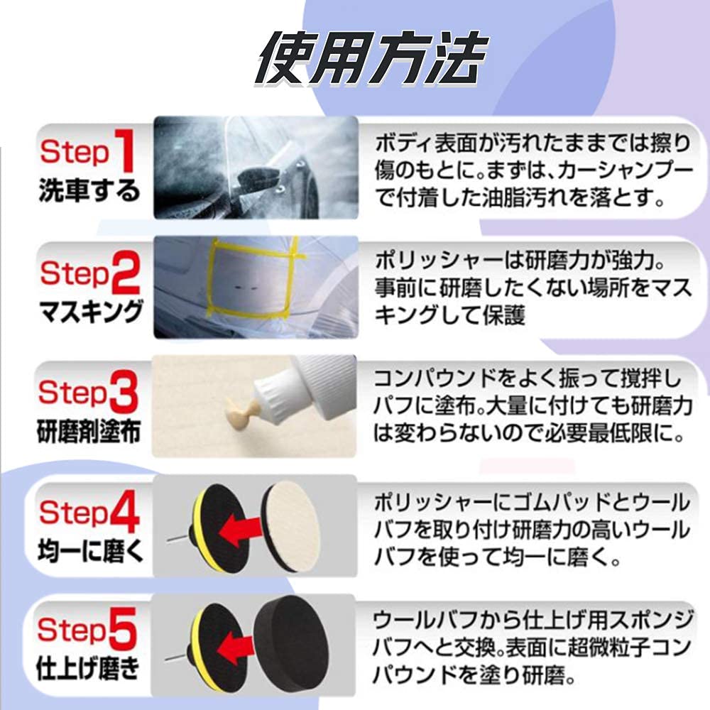 【多機能】このポリッシャーバフは洗車やワックスがけ、コンパウンド、研磨、ワックスがけなどに使えます。