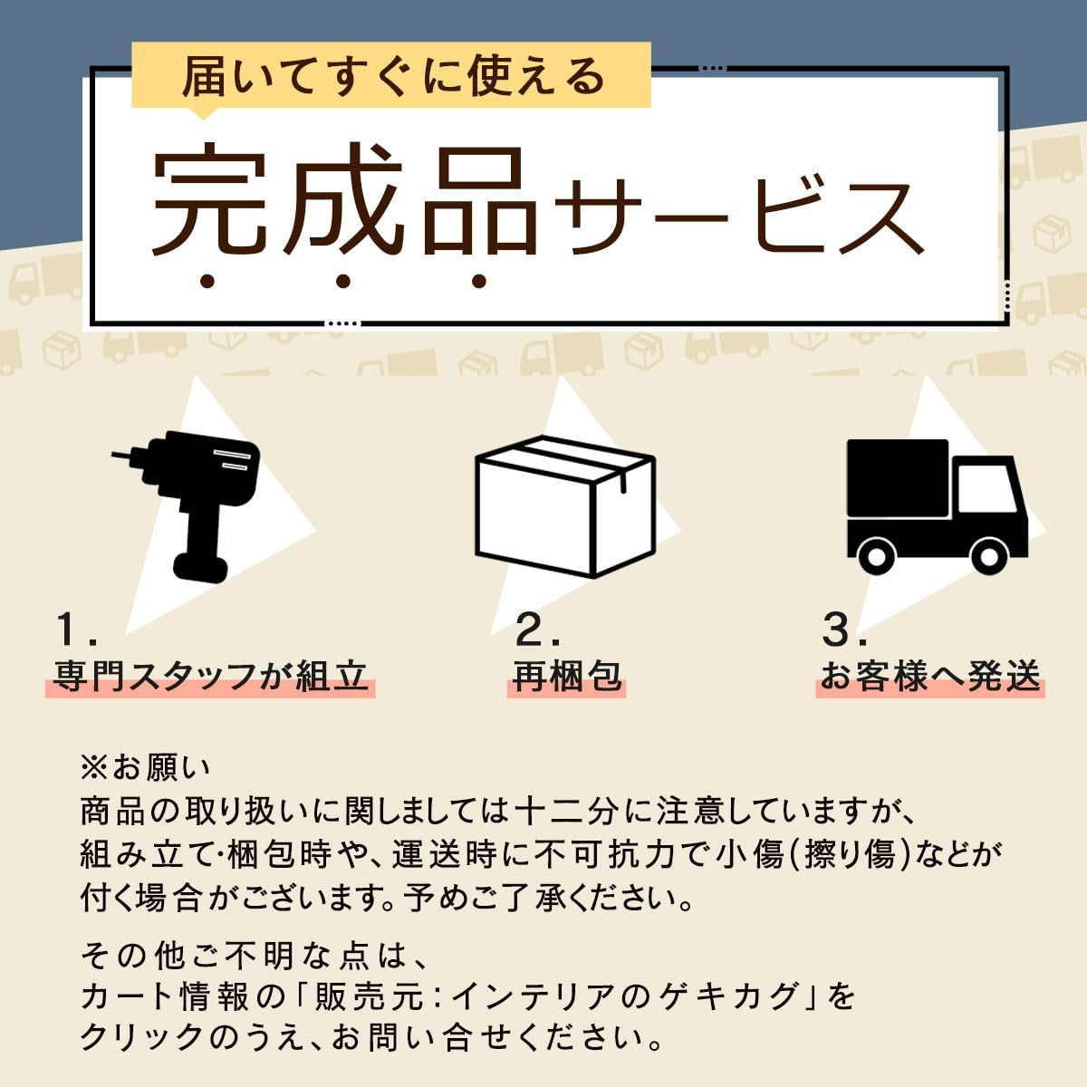 ■完成品について■ 1.商品の梱包にはリサイクル段ボールを使用しています。2.ご注文をお受けしてからすぐに組み立てを行う為、ご注文後のキャンセルは原則お受け致しておりません。3.組み立て作業完了後の発送になりますので翌日お届け対象外商品です。4.商品のお届けは玄関先までとなります。