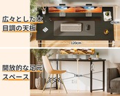 【ややゆったりとしたサイズ感を与える】横幅120cmは、パソコンや電話、文房具や書類を広げても気軽に作業できるサイズです。ワーカーの快適さを追求して作られたワークデスクだけではなく、ゲーム用としても適切なものです。