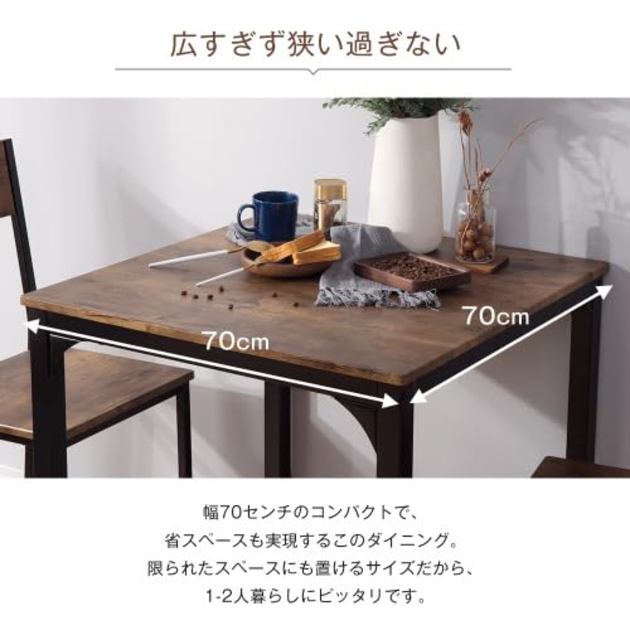 四角 ダイニング 3点セット ダイニングテーブル ダイニングセット 食卓 チェア2脚 幅70 コンパクトサイズ 2人掛け おしゃれ
