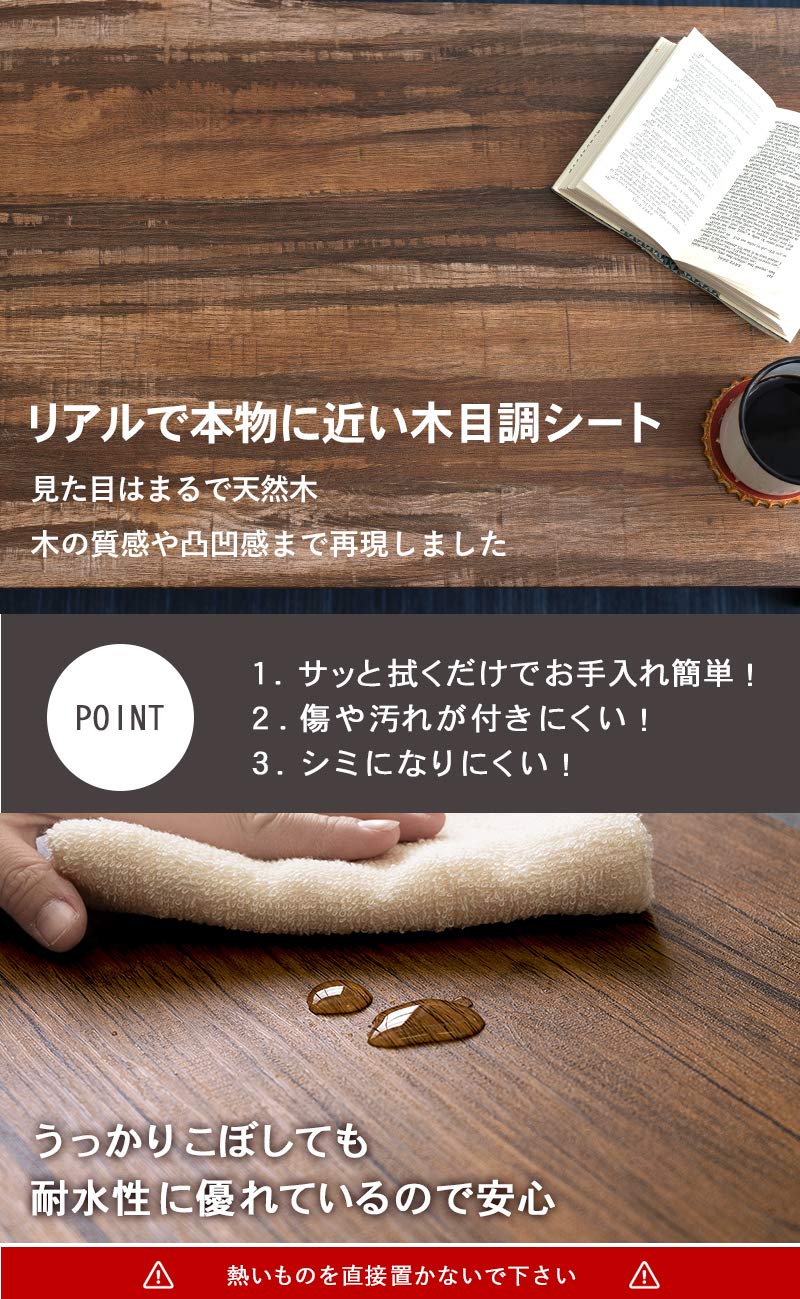 【異素材の組合わせでデザイン性UP】リアルで本物に近い木目調シート張りの天板と耐久性に優れたスチール脚がインテリアとしての存在感を発揮。