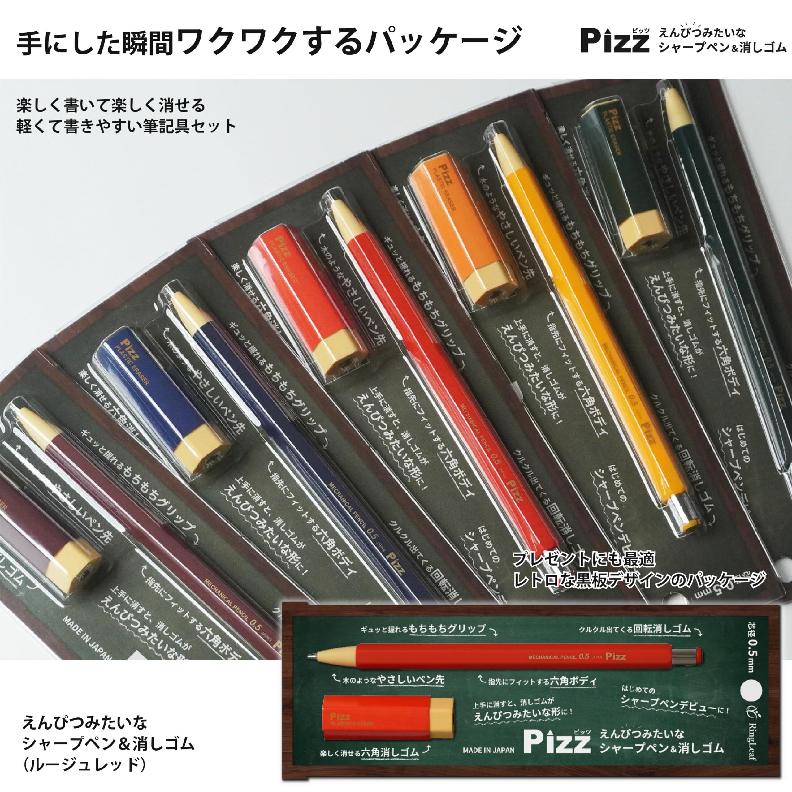 Pizz(ピッツ) えんぴつみたいなシャープペン&消しゴム ギュッと握れる全面ラバー仕上げ | 日本製 0.5mm [ルージュレッド]