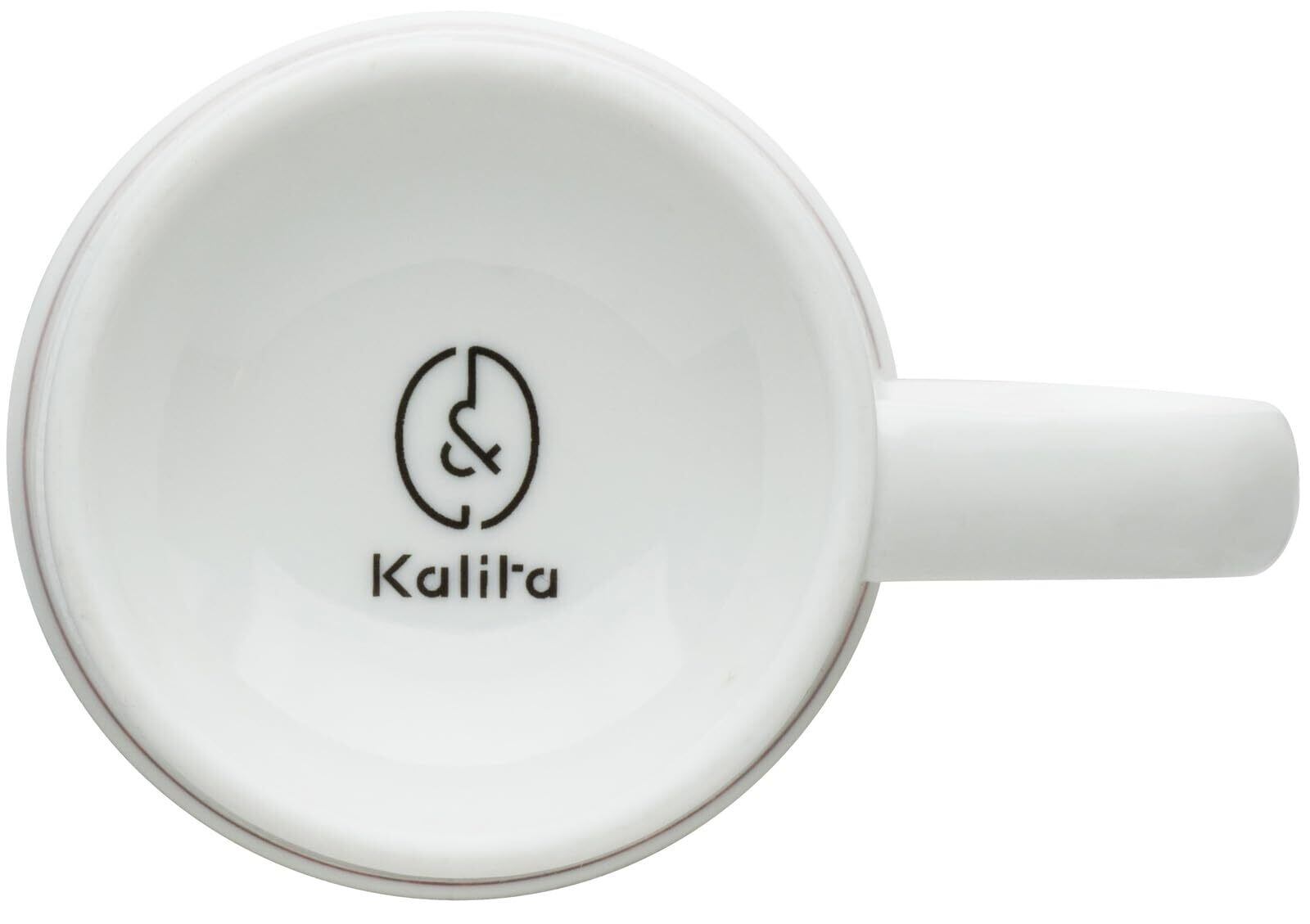カリタのアイコンである「カリタチェック」とロゴを配したマグカップ ぼってりとしたデザインが特徴で、厚みのある陶器なので温かい飲み物が冷めにくいです。