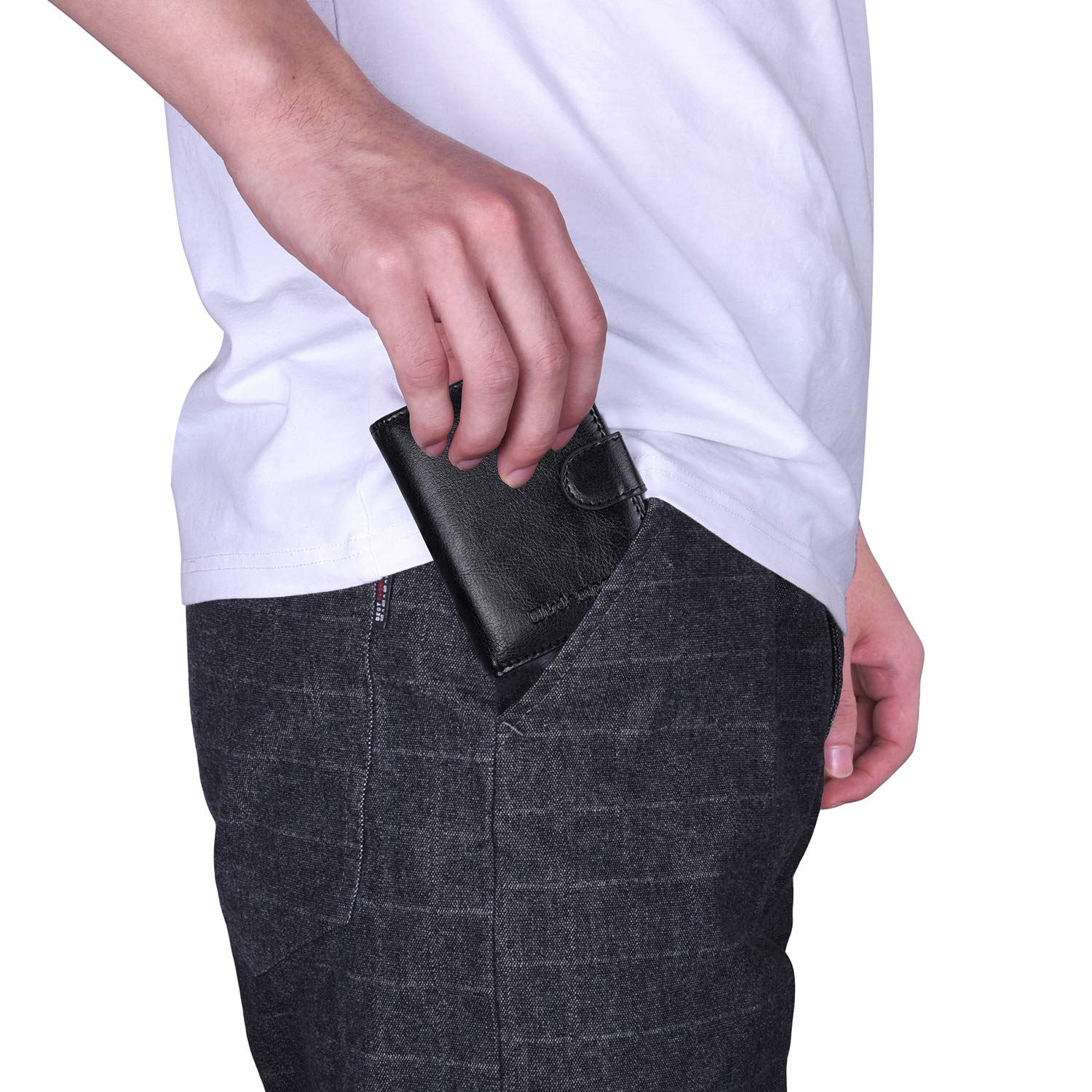 【しっかりした材質】表面は柔らかいPUレザーより作られ、手触りは心地よいです。特に、PUレザーの内層には RFIDブロッキングシートもうまく内蔵しております。中身は透明なPVC収納ポッケトなので、入れたカードを見つけやすいし、急ぎの場合でもサッと取り出せて非常に便利です。