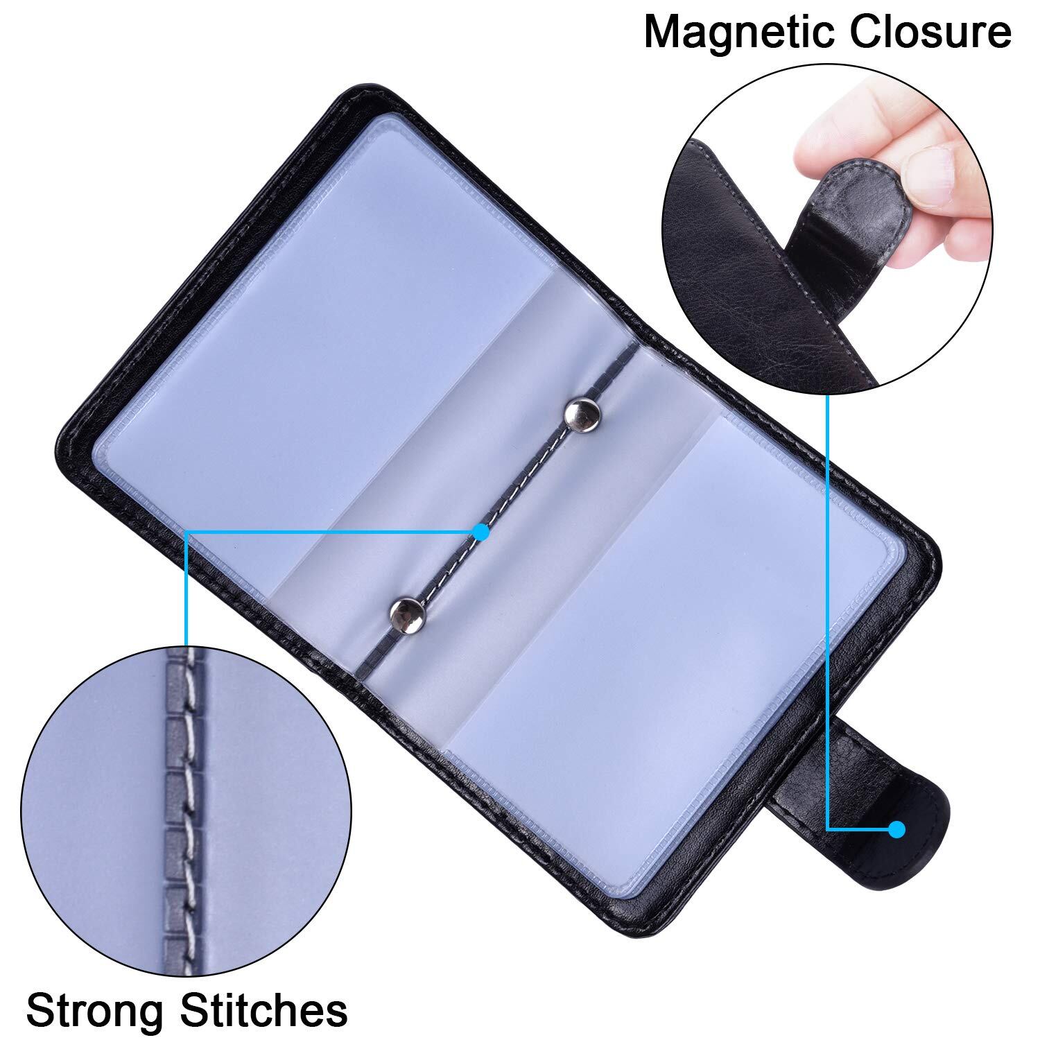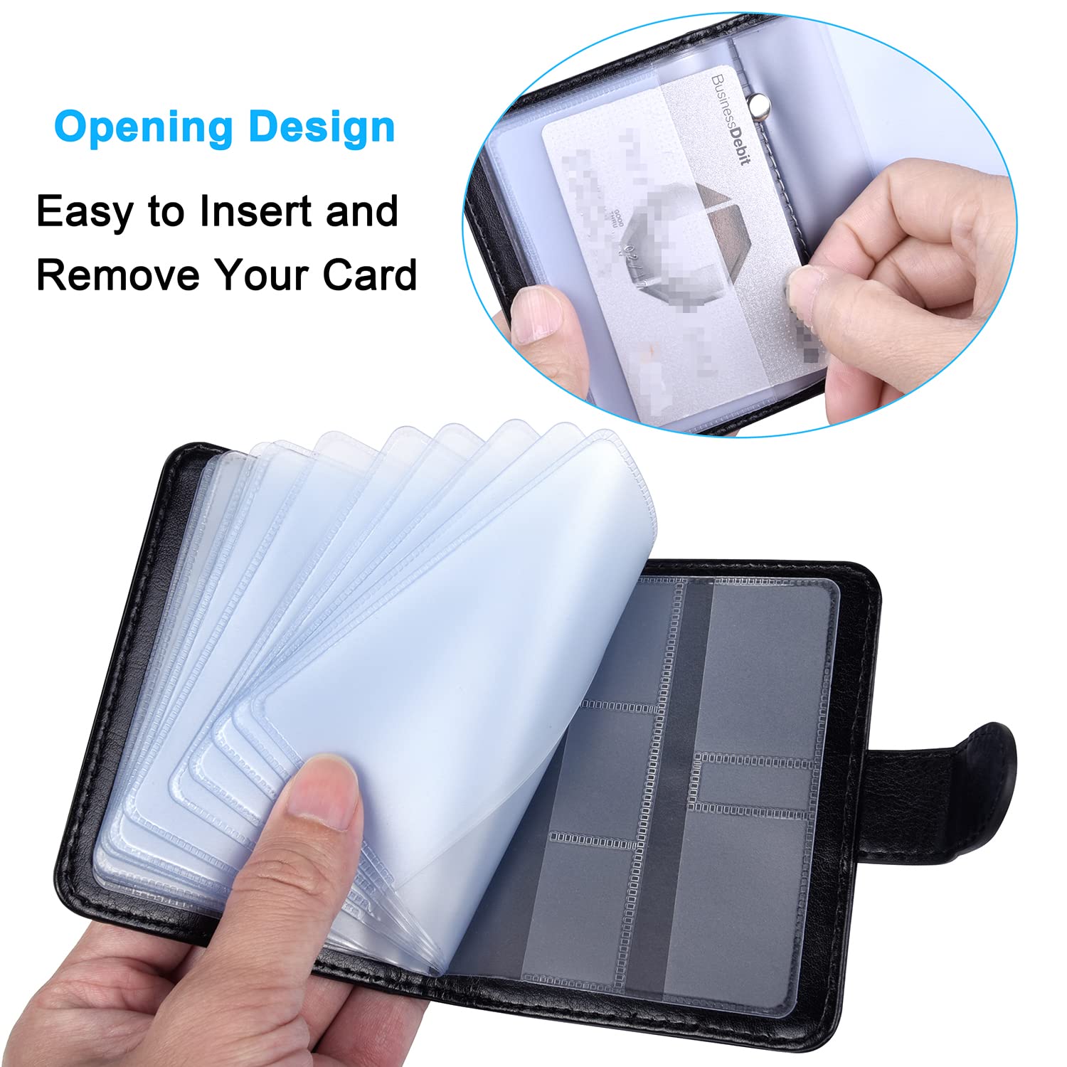 [Wisdompro] クレジットカードケース 磁気 スキミング防止 カードファイル 透明 資格証/保険証/免許証/キャッシュカードケース ポイントカード入れ PUレザー 縦型 20枚収納 ブラック