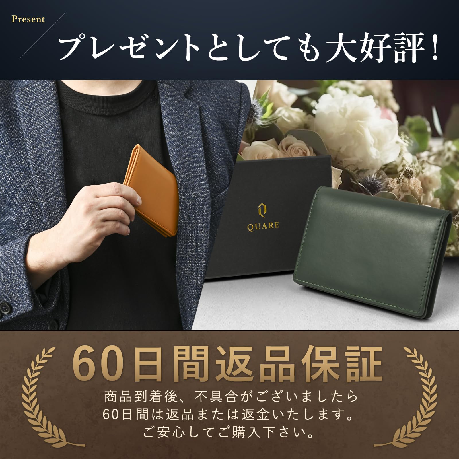[QUARE] 名刺入れ メンズ 本革 名刺ケース ブランド 人気 大容量 高級 オイルレザー 男性 プレゼント (ディープグリーン)