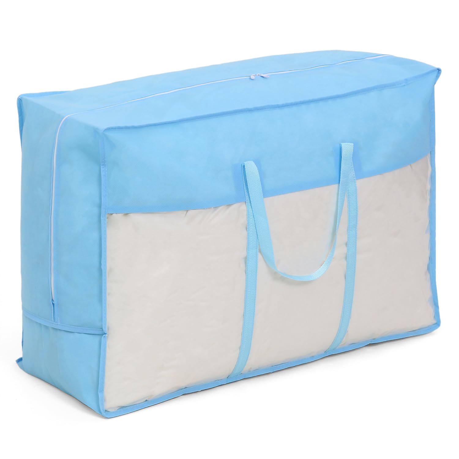 【特価商品】アストロ 羽毛布団 持ち手付き収納袋 1枚 軽量 持ち運びに便利 コンパクトに収納できる収納ケース 羽毛をつぶさず優しく軽圧縮保管 通気性の良い不織布製でほこりや汚れをガード シングルサイズ1~2枚収納可能 圧縮袋 布団ケース ふとん収納袋 収納ケース 移動 コインランドリー クリーニング 引っ越し 敷 掛 布団 ふとん 収納 圧縮袋 薄型 湿気 除湿 水色 102-12