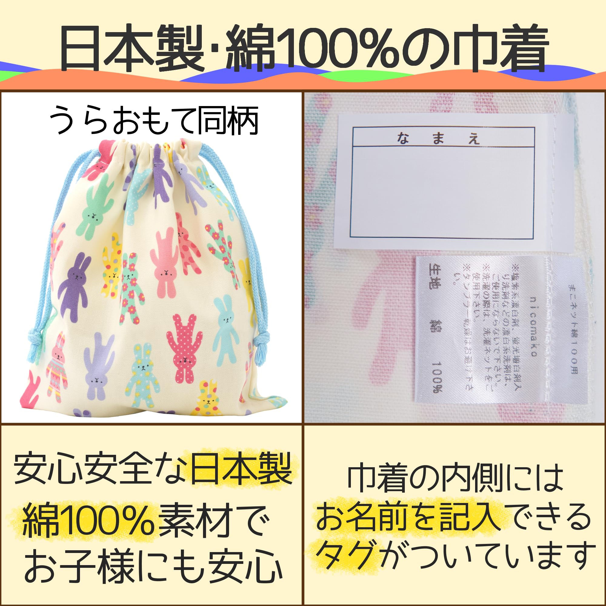 【2022最新】nicomako(ニコマコ) 巾着袋 ランチョンマット用 コップ袋 日本製 子供 キッズ 男の子 女の子 きんちゃく M
