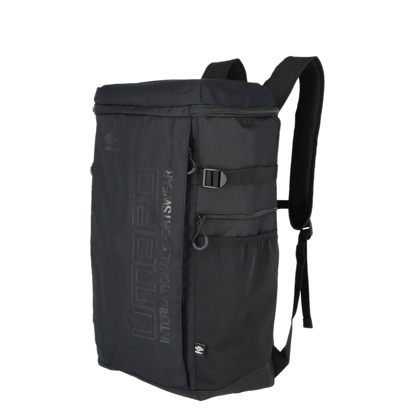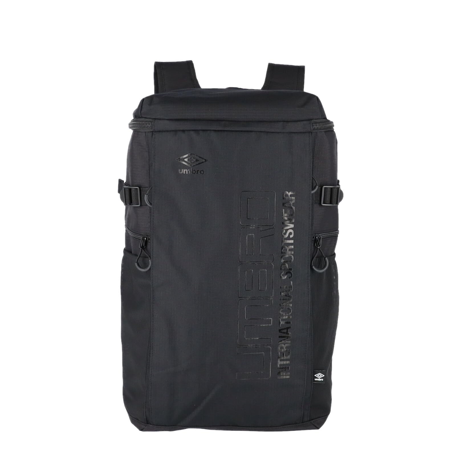スポーツブランド<アンブロ>のロングボディスクエアリュック。縦57cmのロングボディ、収納量40Lと大容量。1泊程度の旅行ならこのバッグ1つでも十分可能です。内側にはショックを和らげるウレタン入りのポケットを兼ね備えているのでタブレットやワイド型ノートパソコンも収納可能。全部で9つの異なるポケットで仕分けもらくらく。多様に使えるアイテムとなっております。