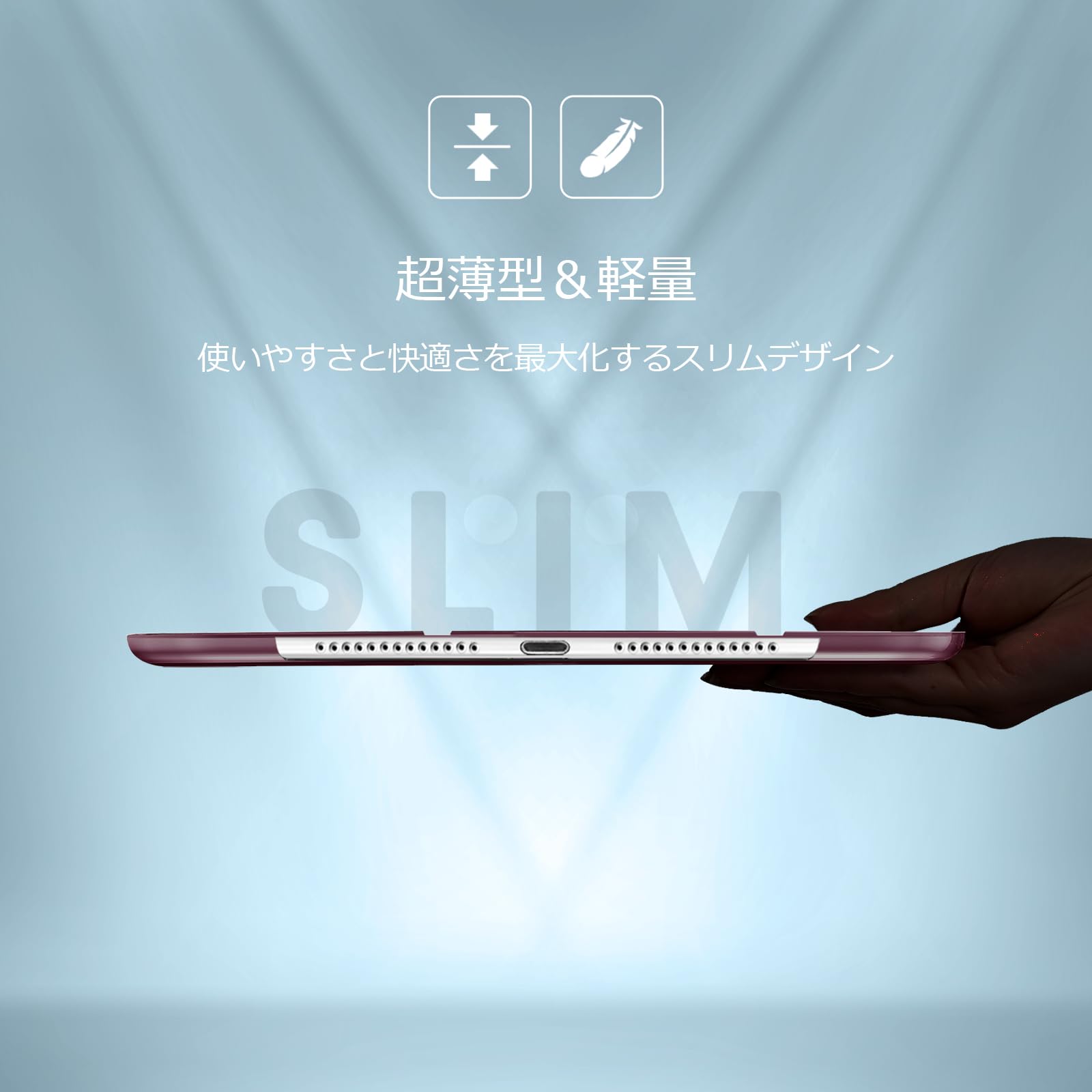 超スリムで軽量なハードバックデザインにより、最小限の重さを追加する前提にiPadを保護します。