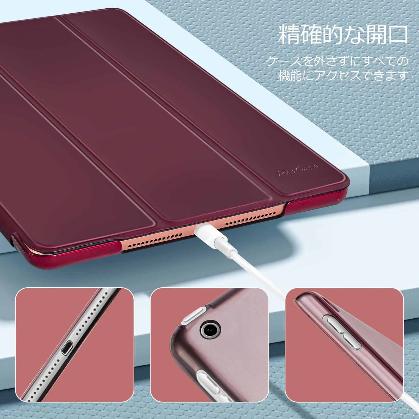 ProCase iPad 9/8/7 ケース (2021 2020 2019) 半透明バックカバー スマートカバー 軽量 三つ折りスタンド iPad 10.2 対応 - ワイン