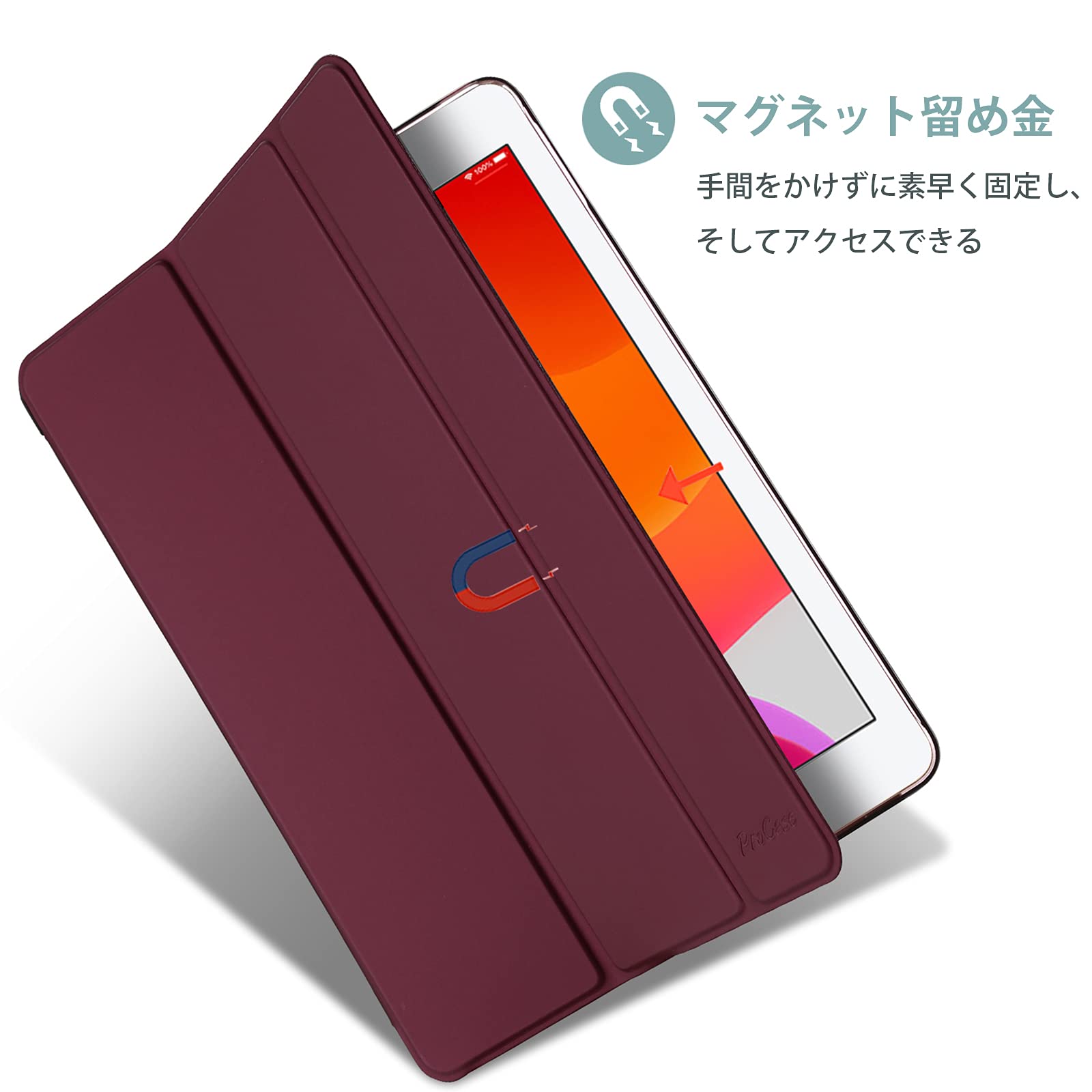 【特価商品】ProCase iPad 9/8/7 ケース (2021 2020 2019) 半透明バックカバー スマートカバー 軽量 三つ折りスタンド iPad 10.2 対応 - ワイン