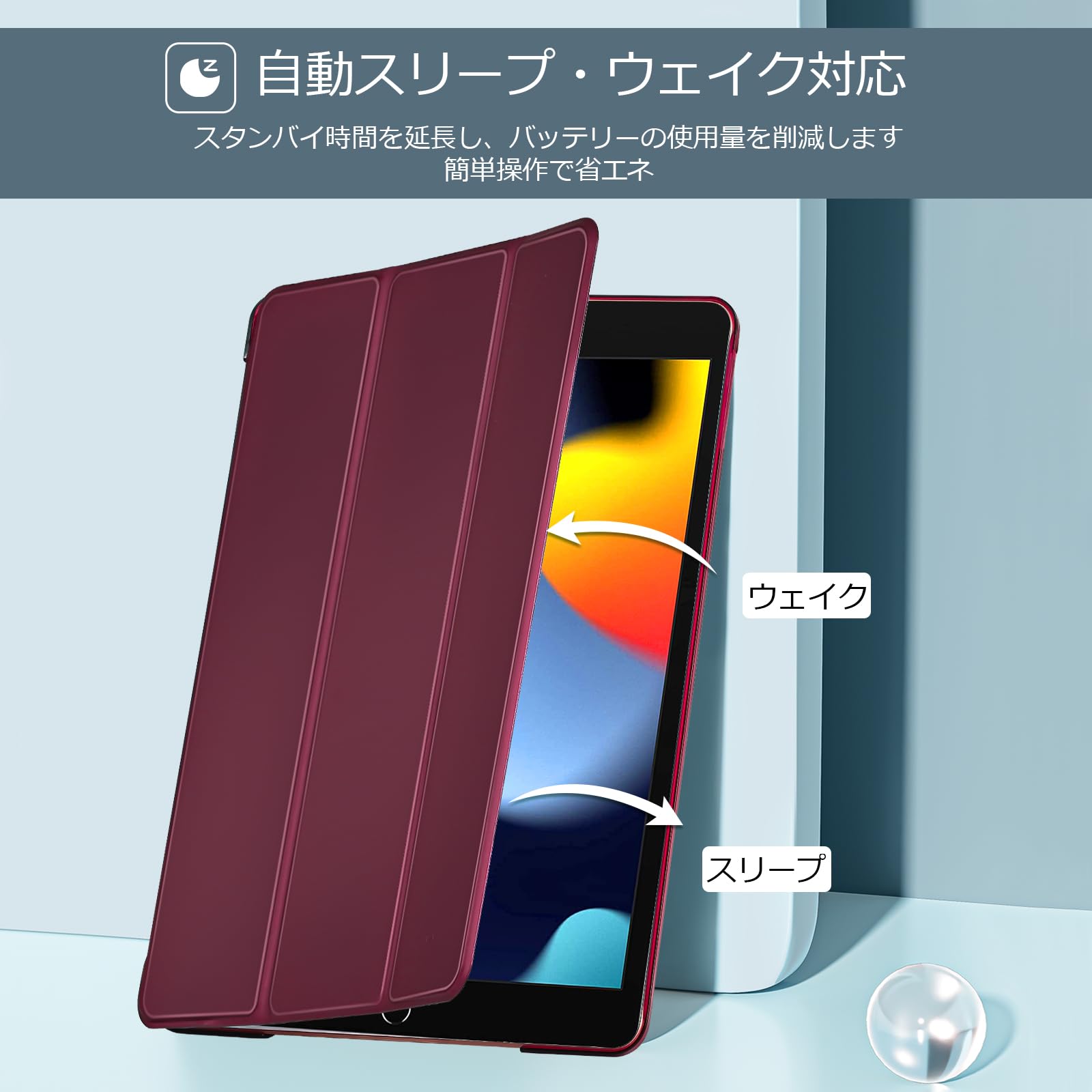 オートスリープ/ウェイクに対応します;マグネットによりカバーの開閉も容易です。