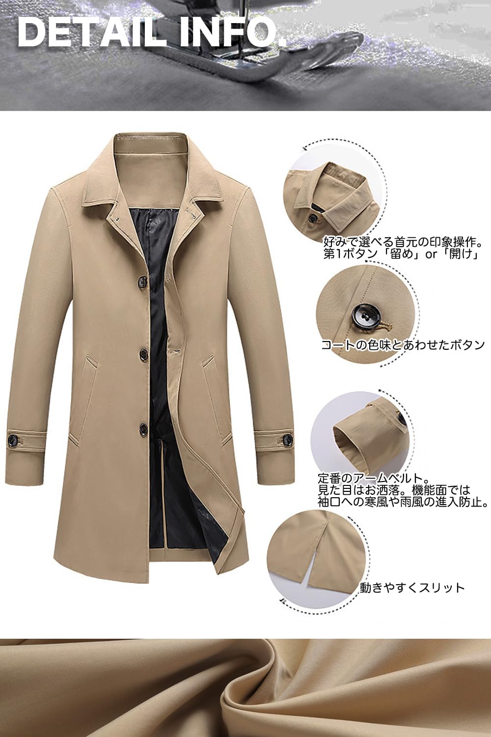 【在庫セール】メンズ トレンチコート ビジネス カジュアル アウター フォーマル ミディアム丈 ミドル 美シルエット スリムフォルム コート レインコート ロングジャケット MA04
