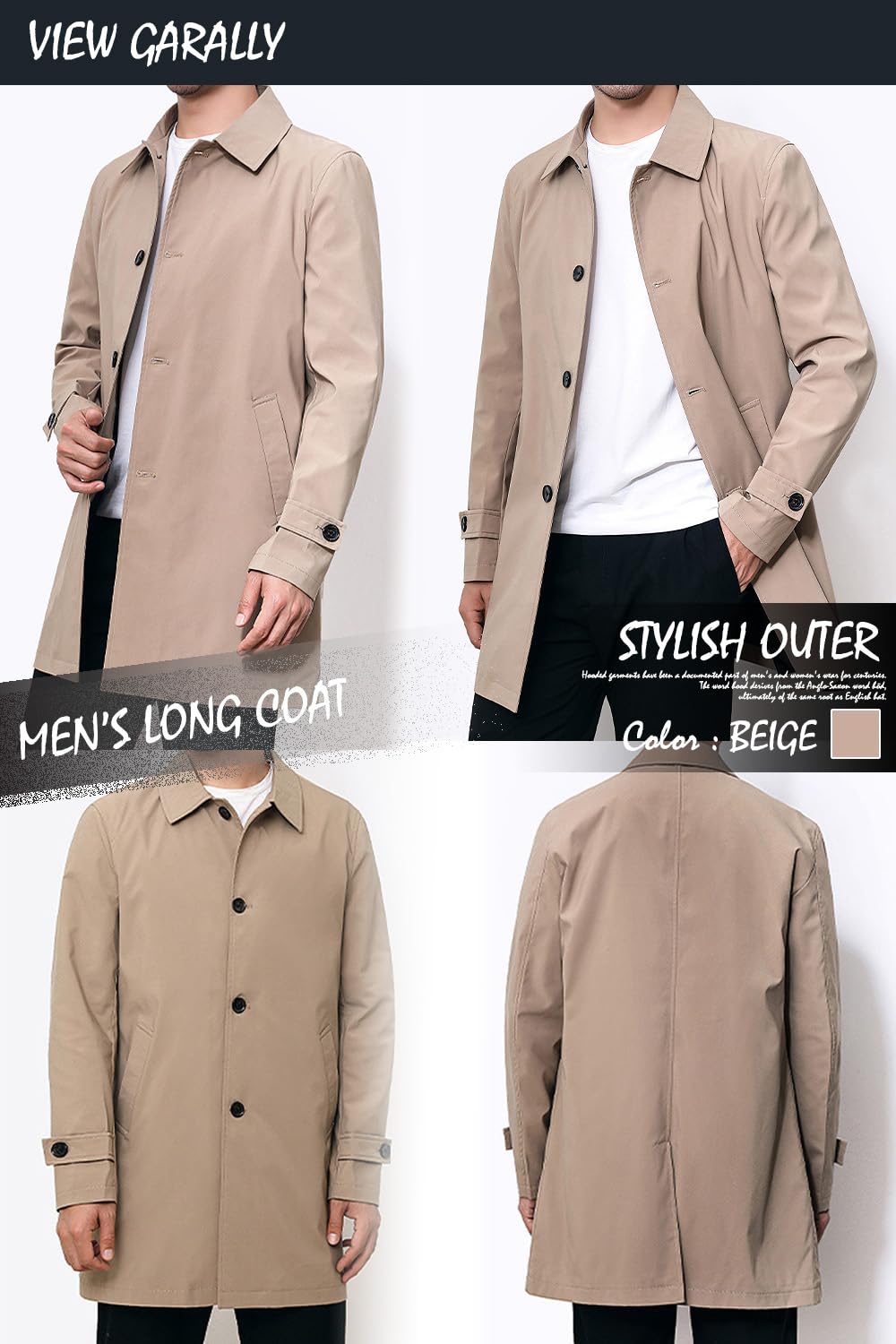 メンズ トレンチコート ビジネス カジュアル アウター フォーマル ミディアム丈 ミドル 美シルエット スリムフォルム コート レインコート ロングジャケット MA04
