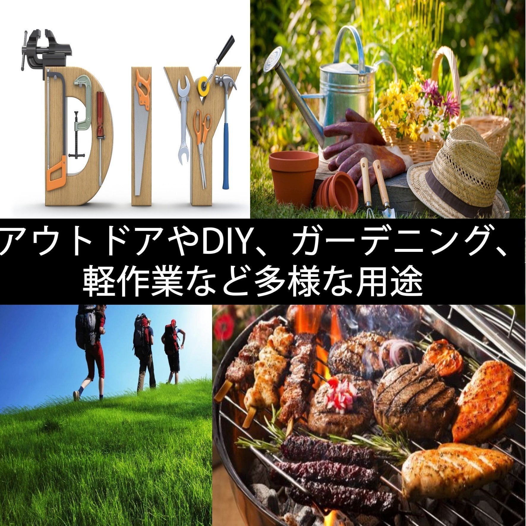 様々な用途:普段使いにはもちろん、本格的なサバイバルゲーム、DIYなどの作業、空港のセキュリティチェック、登山や散歩、旅行、バーベキューなどのアウトドア等々多種多様な使用用途