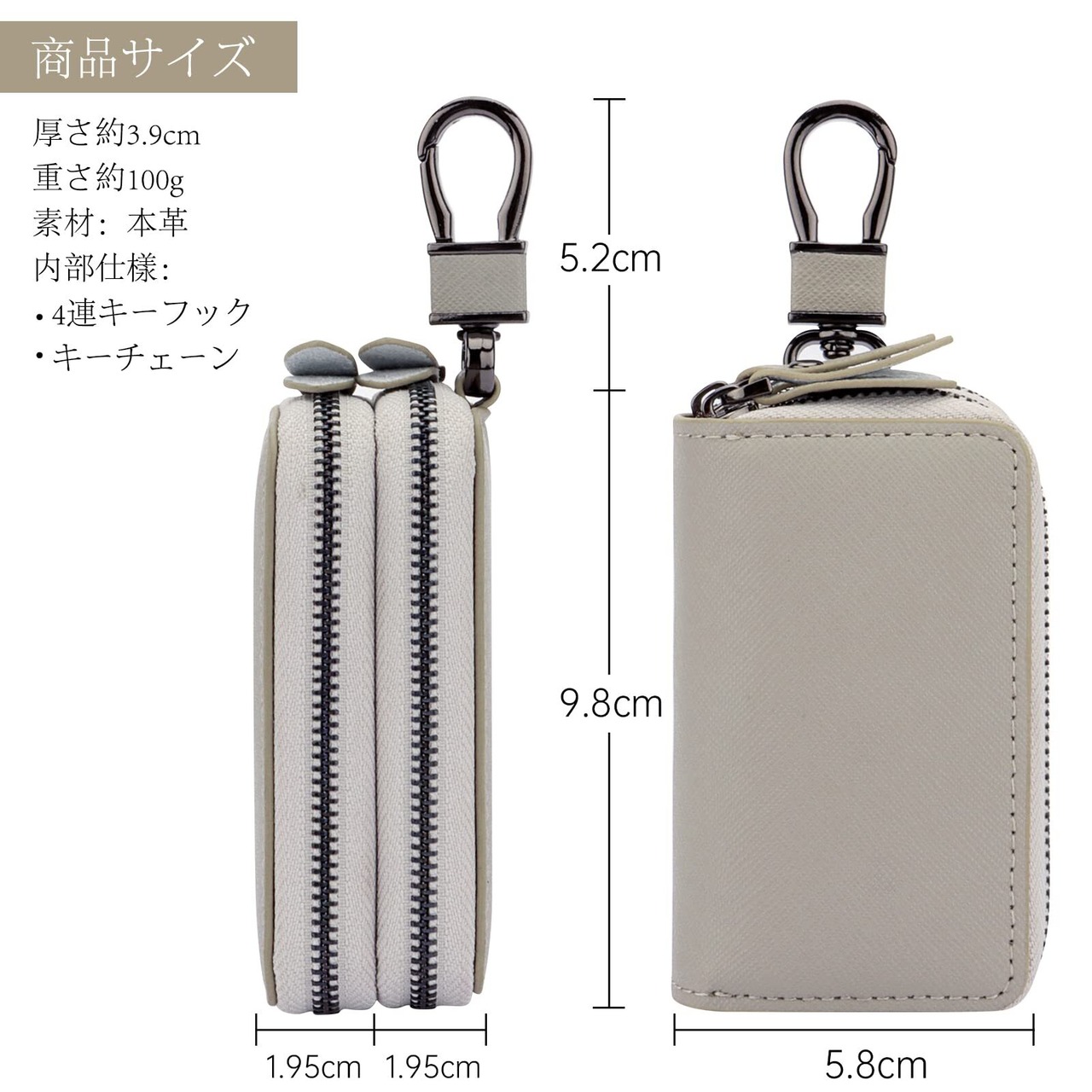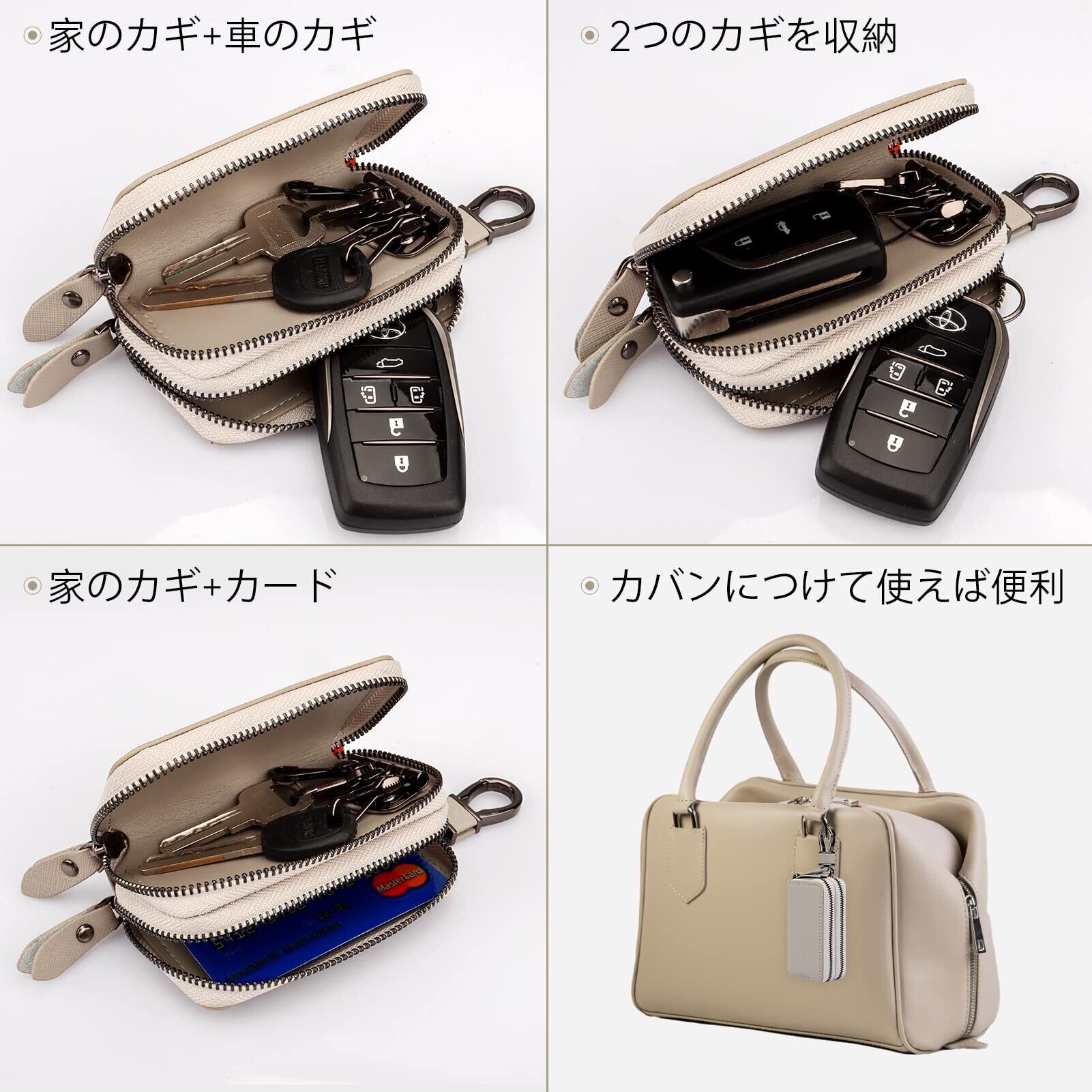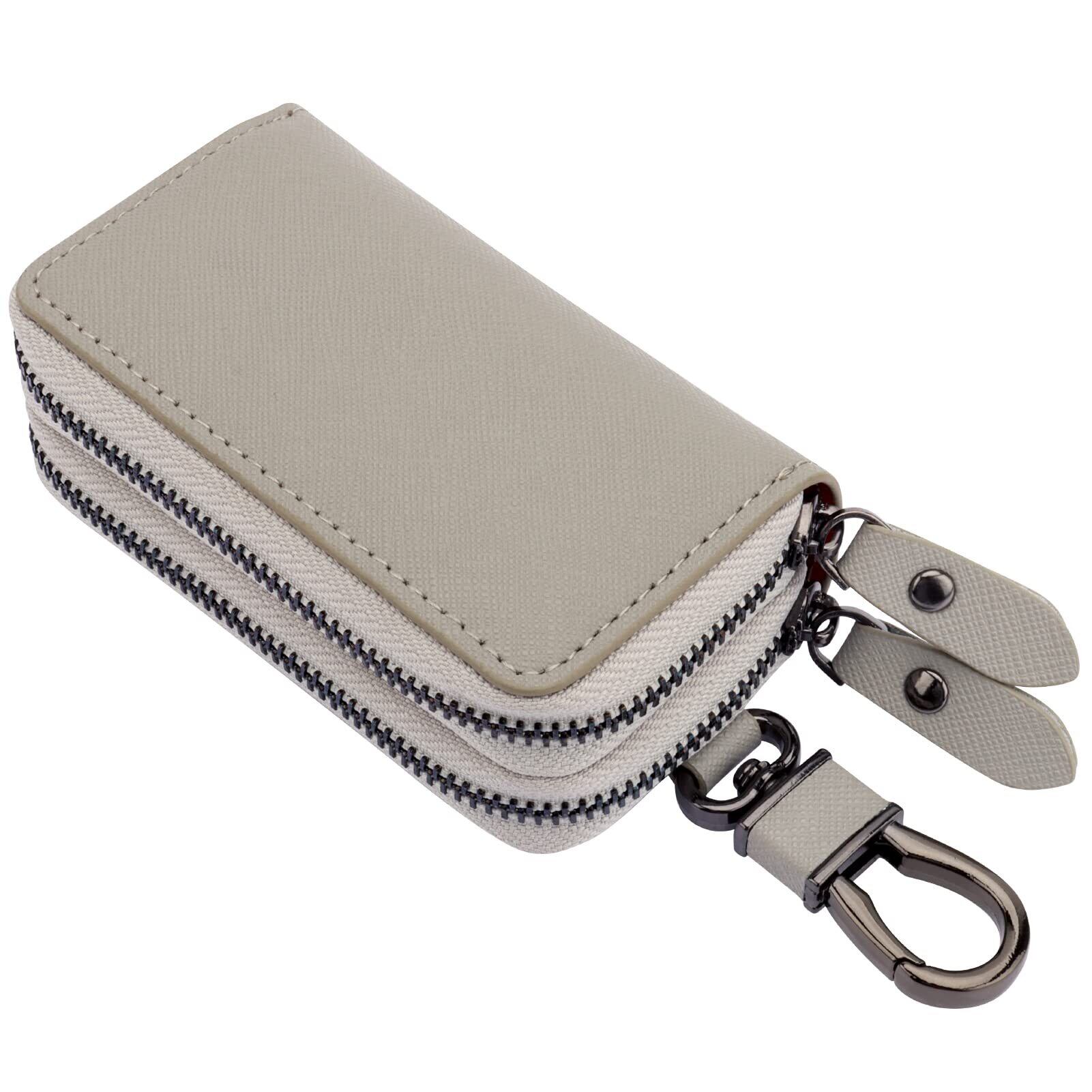 キーケース メンズ レディース スマートキーケース 2つ 鍵が同時収納 ダブルポケット 革 多機能 便利 (グレー)