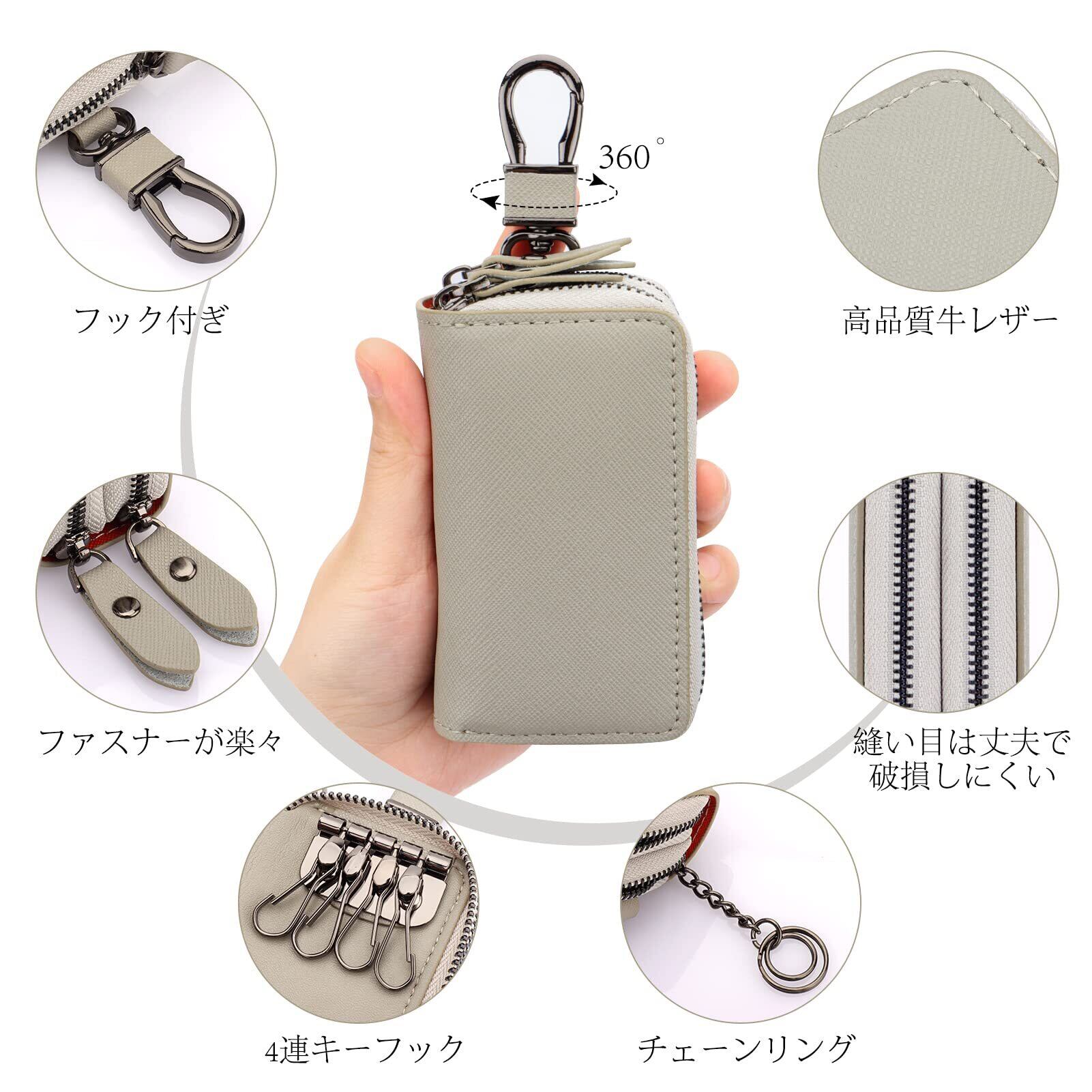 【牛本革仕様】レザー、キーケースの表面は、厳選された高品質の第一層牛革を採用して作られます。革の質感、タイトな革、素晴らしい光沢、強い靭性と通気性があるもので。普通の革と比較して、より耐久性があり、より快適な感触、より上品な味があります。裏は、耐摩耗性、耐老化性を備えた最も繊細な繊維革で作られます。また、ファスナーは高品質の合金で作られ、高級感を持ちながら、スムーズに開閉できます。