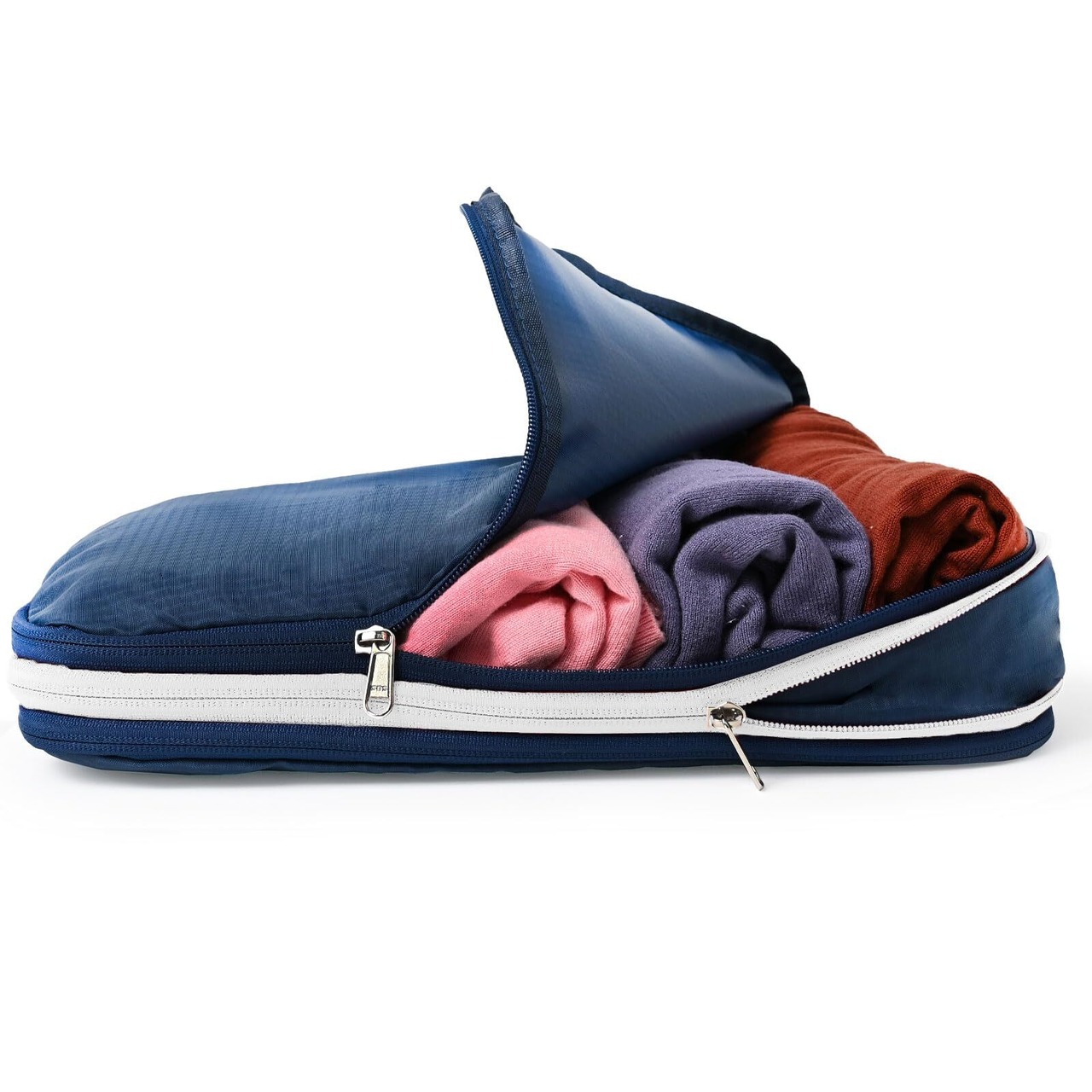 【じゃらん掲載】 TABIGO!! 圧しゅくん 圧縮袋 旅行 トラベルポーチ 圧縮ポーチ 圧縮バッグ 便利グッズ 衣類 洋服 パッキング (ネイビー×ホワイト)