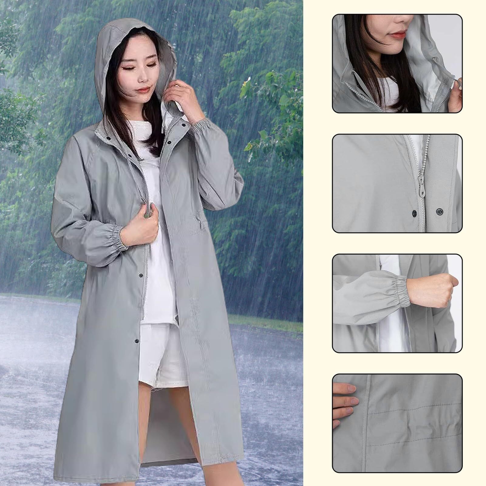 [Formemory] レインコート 自転車 レディース 袖口ゴム 雨雪兼用 腰部分収束でき レインポンチョおしゃれ レインウェア ロング丈 かわいい 軽量 快適 頭部分収束でき 防水 通学 通勤 3色