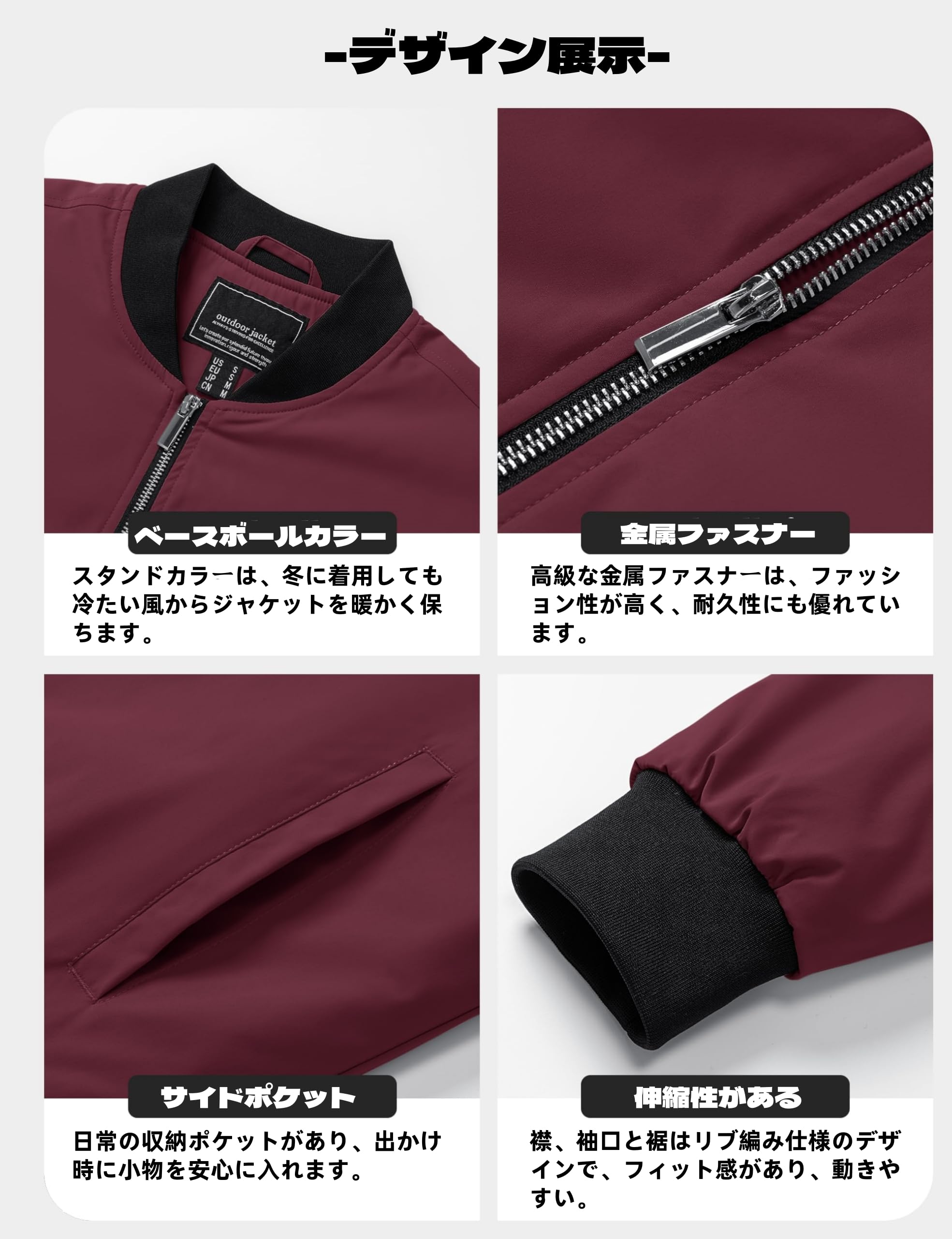 【防風&撥水】このジャケットは防風性と撥水性を備えており、寒さに効果的に耐えることができます。襟、袖口と裾はリブ編み仕様のデザインが、フィットして動きやすい、防風性も高めます。